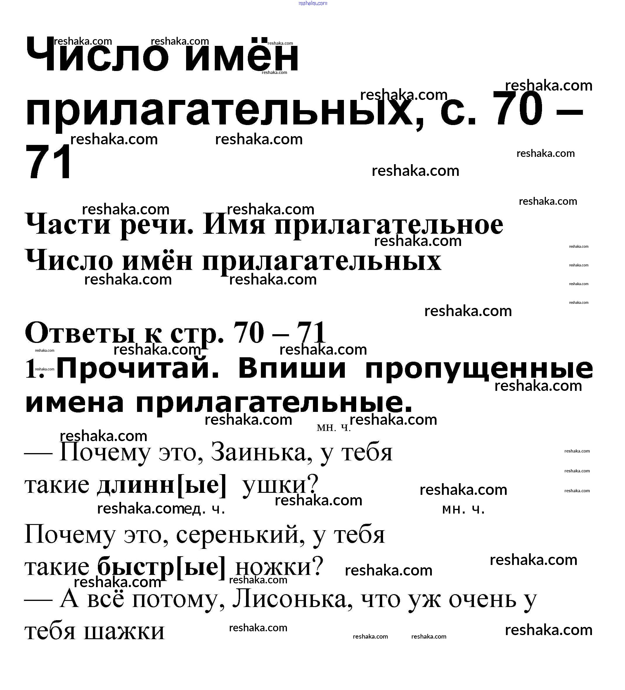 Решака - онлайн ответы Русский язык Канакина, Щеголева за 3 класс Проверочные работы ФГОС 2018 - Число имён прилагательных стр. 70 – 71