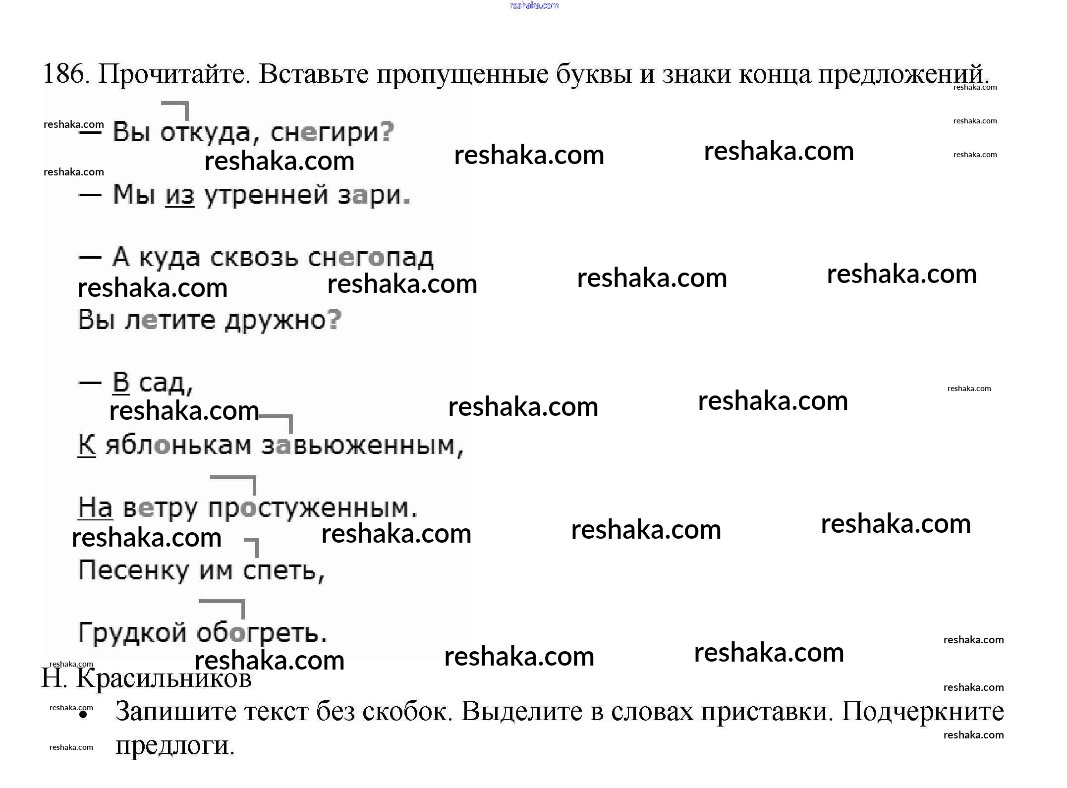 Решака - онлайн ответы Русский язык Канакина за 3 класс Рабочая тетрадь ФГОС 2012 - 186