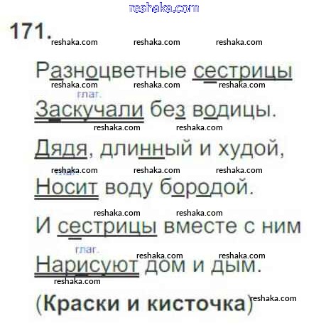 Представляем вам сборники по Русскому языку, с готовыми ответами к Рабочей тетради Канакина школьной программы для учеников третий класса. Это не просто гдз с ответом, а с подсказками, как верно решить Часть 2. Задания 171. Проверяй домашку с умом и получай высший балл!