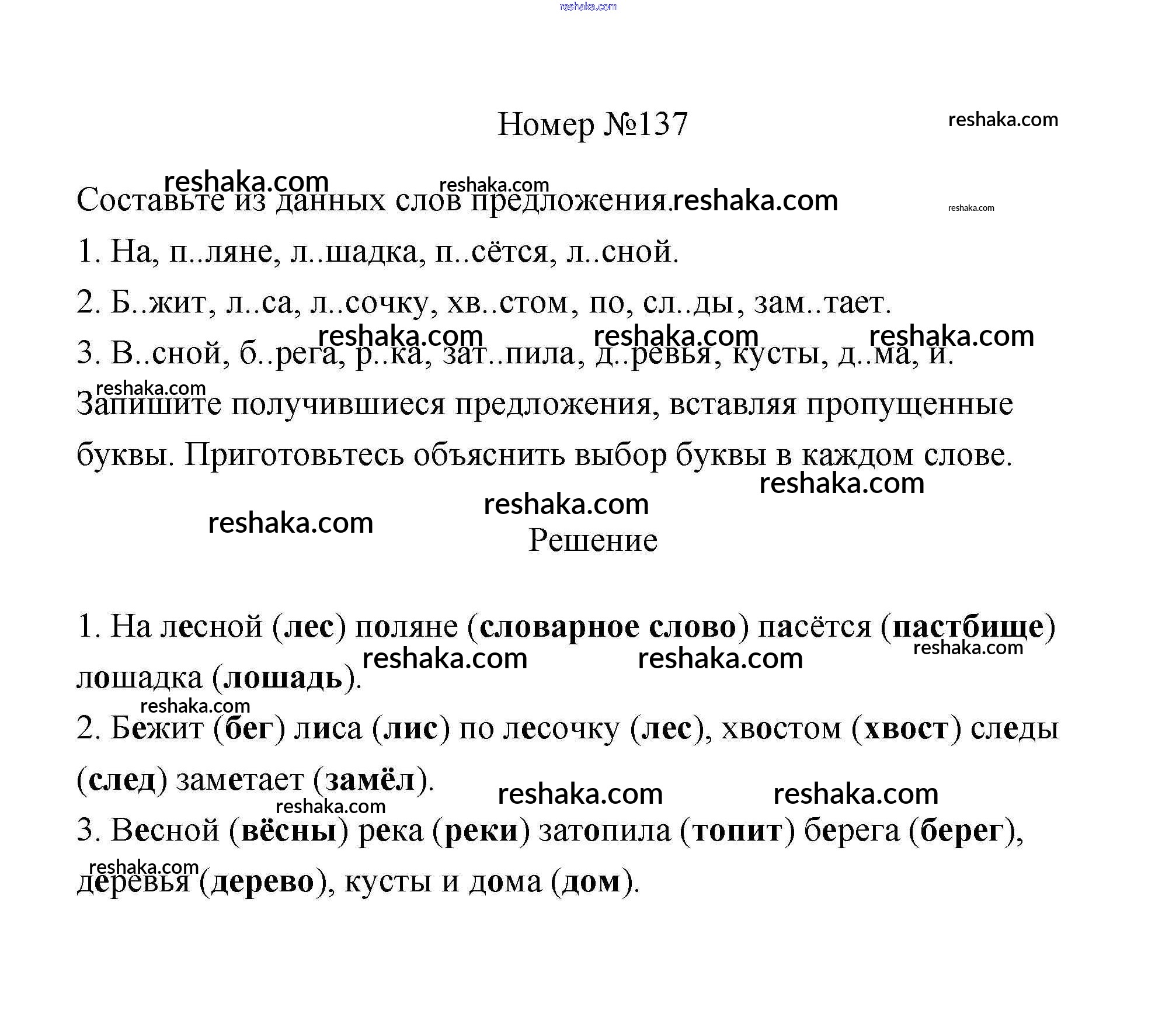Решака - онлайн ответы Русский язык Климанова, Бабушкина за 3 класс Рабочая тетрадь ФГОС 2018 - 137