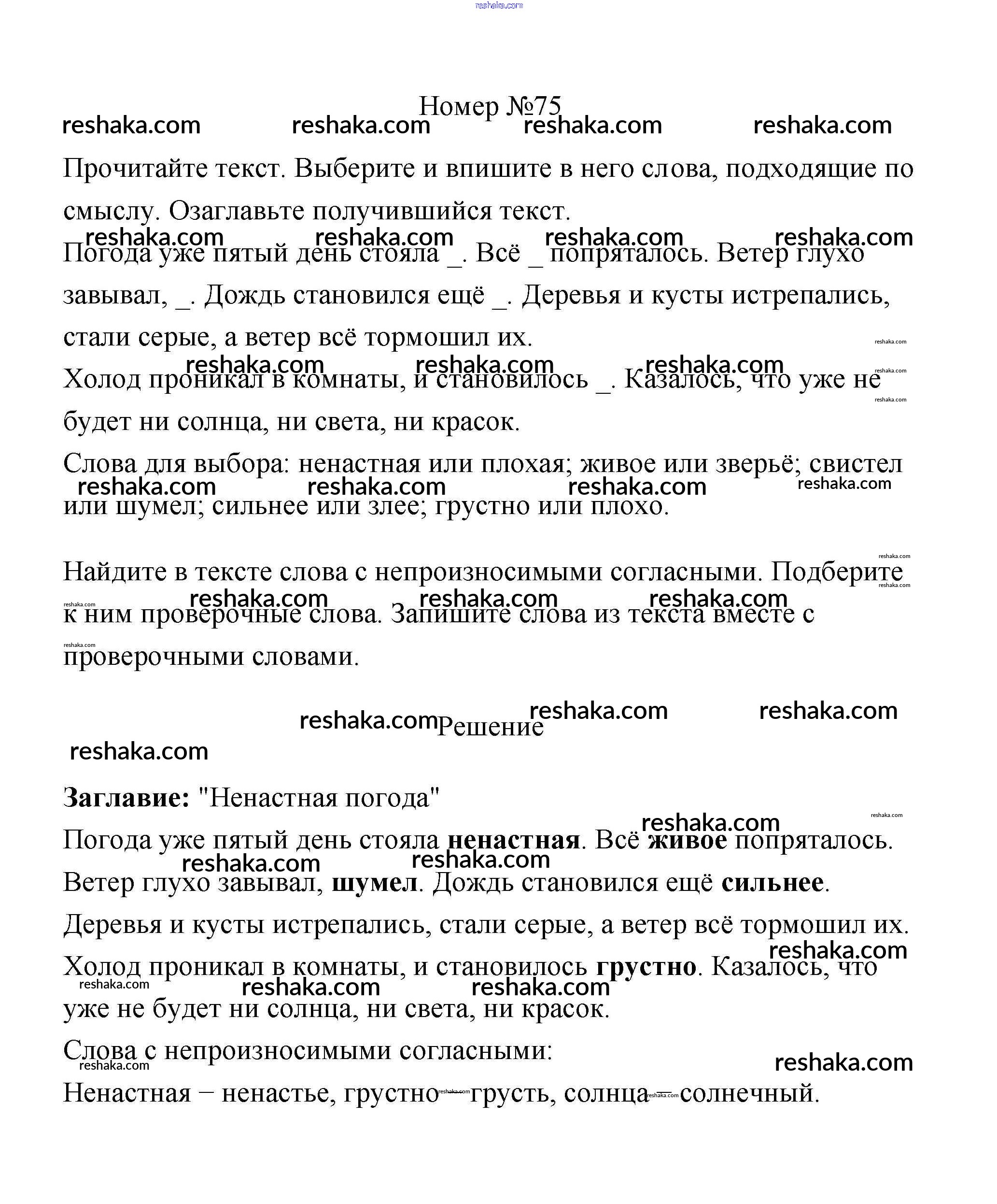 Решака - онлайн ответы Русский язык Климанова, Бабушкина за 3 класс Рабочая тетрадь ФГОС 2018 - 75