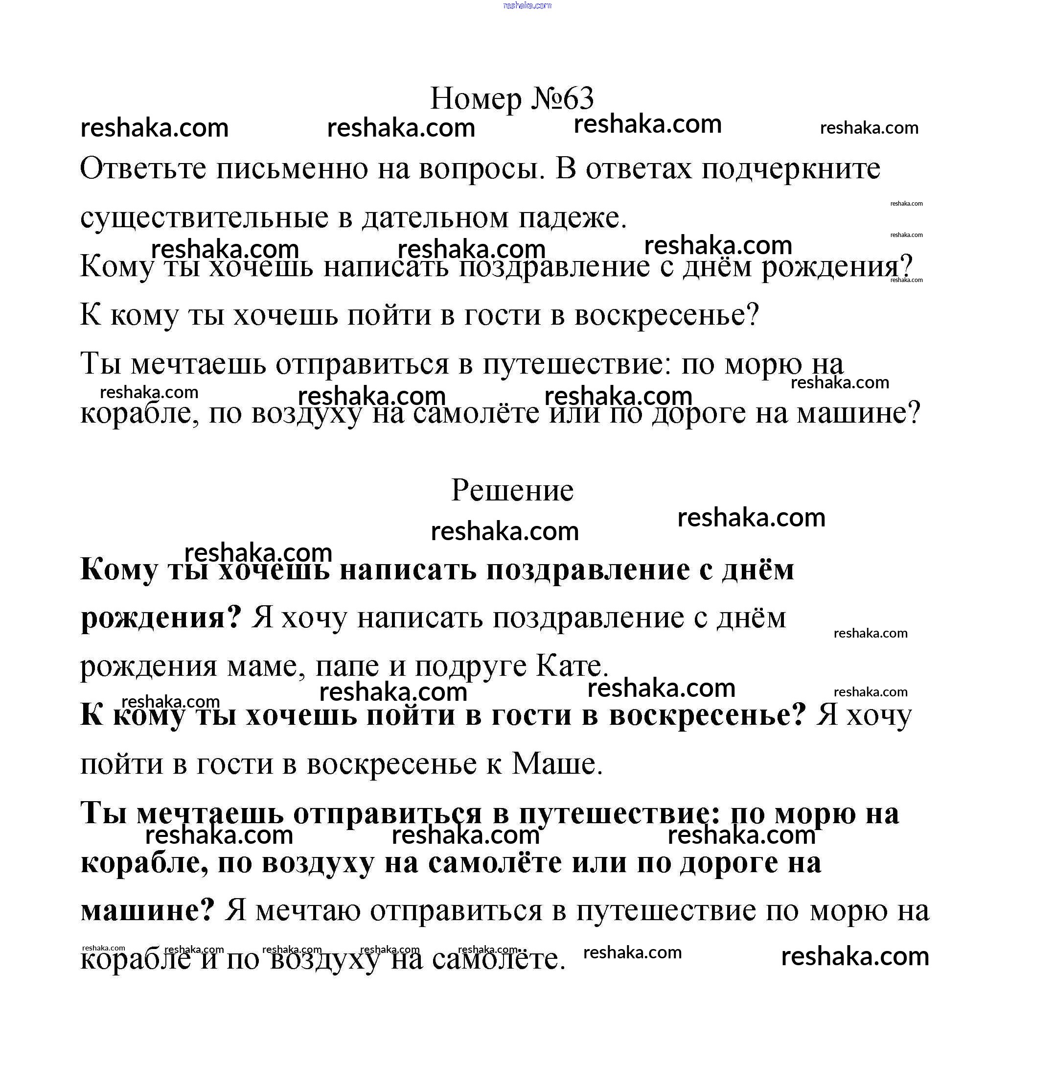 Решака - онлайн ответы Русский язык Климанова, Бабушкина за 3 класс Рабочая тетрадь ФГОС 2018 - 63