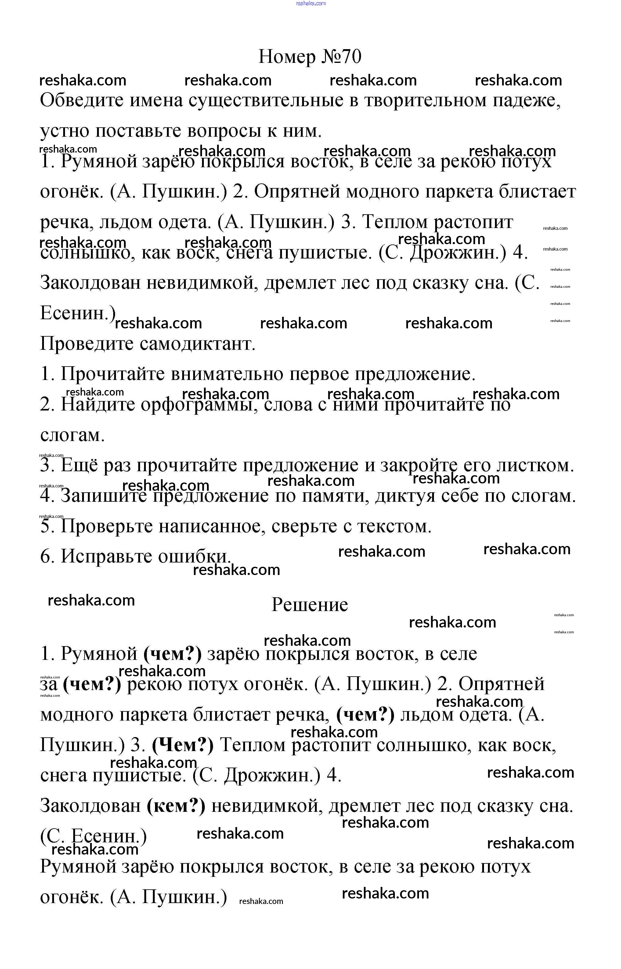 Решака - онлайн ответы Русский язык Климанова, Бабушкина за 3 класс Рабочая тетрадь ФГОС 2018 - 70