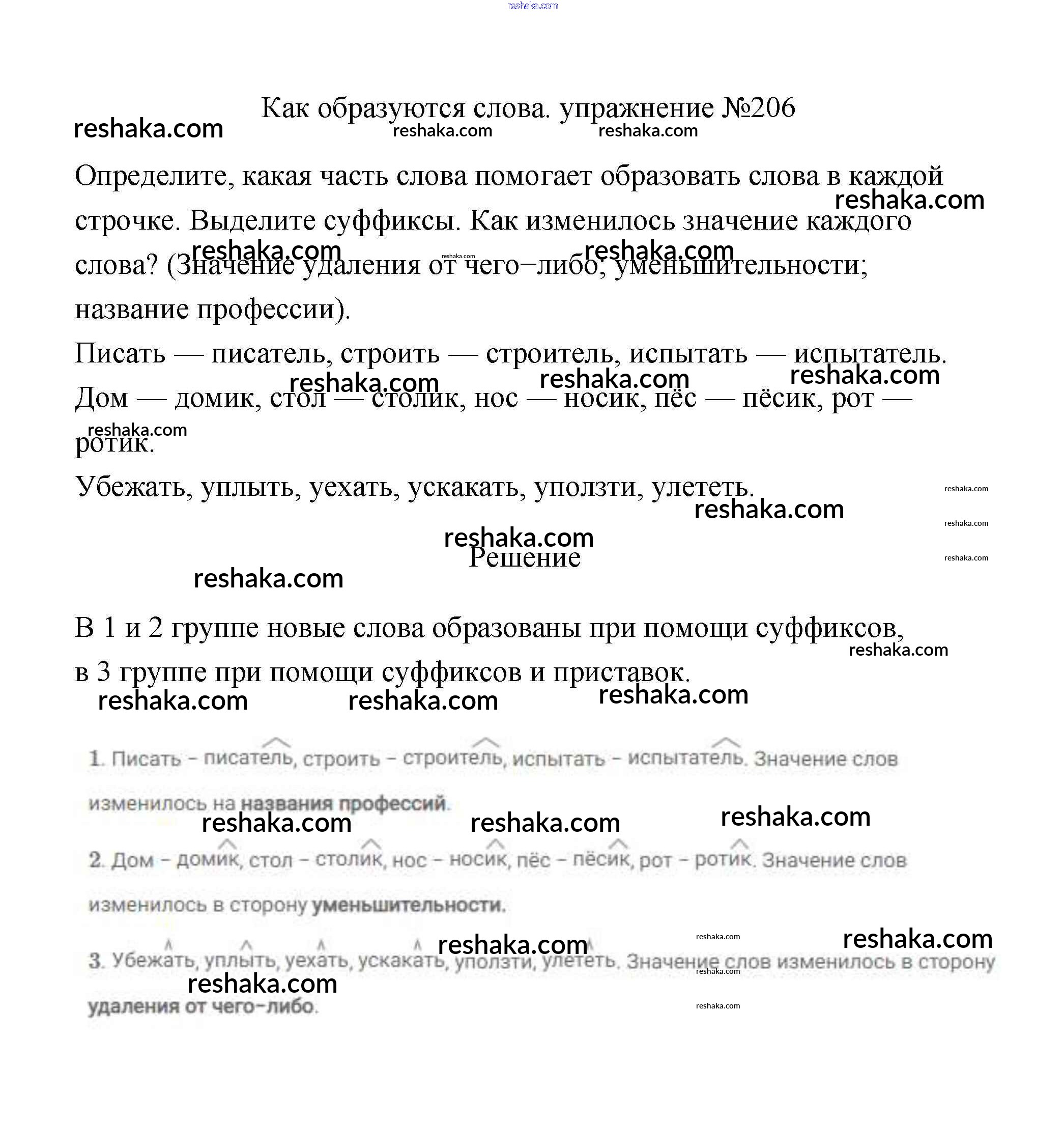 Решака - онлайн ответы Русский язык Климанова, Бабушкина за 3 класс Учебник ФГОС 2019 - 206