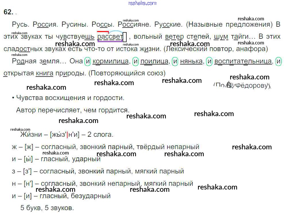 Решака - онлайн ответы Русский язык Бунеев, Бунеева за 4 класс Учебник ФГОС 2016 - 62
