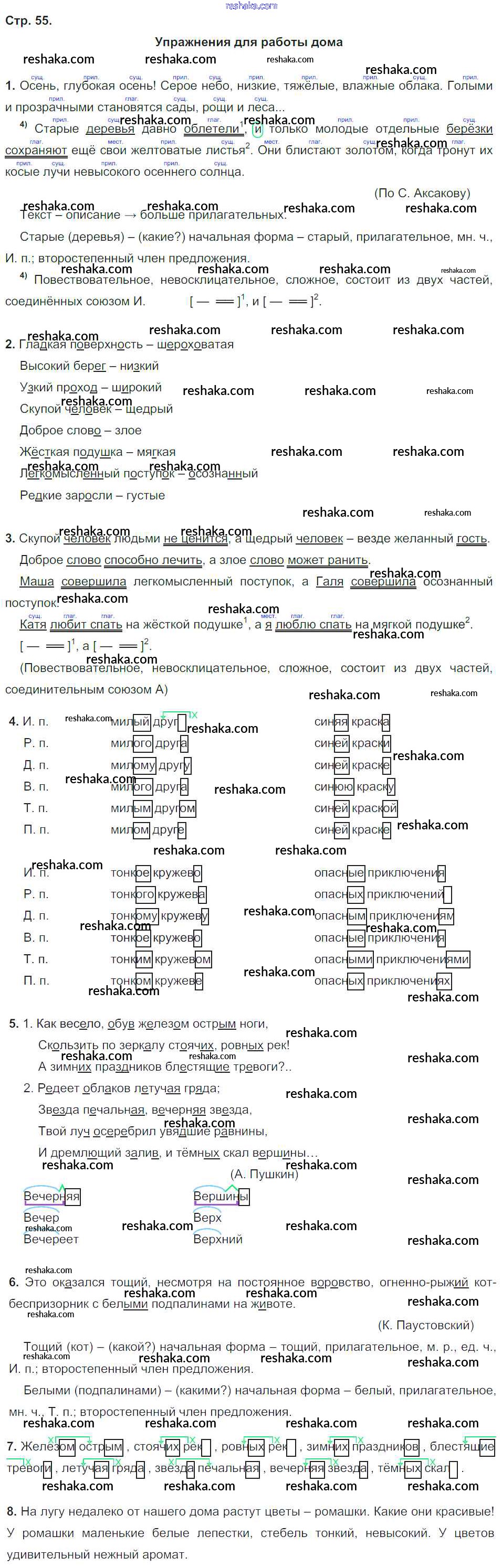 домашнее упражнение / часть 2. страница / 55