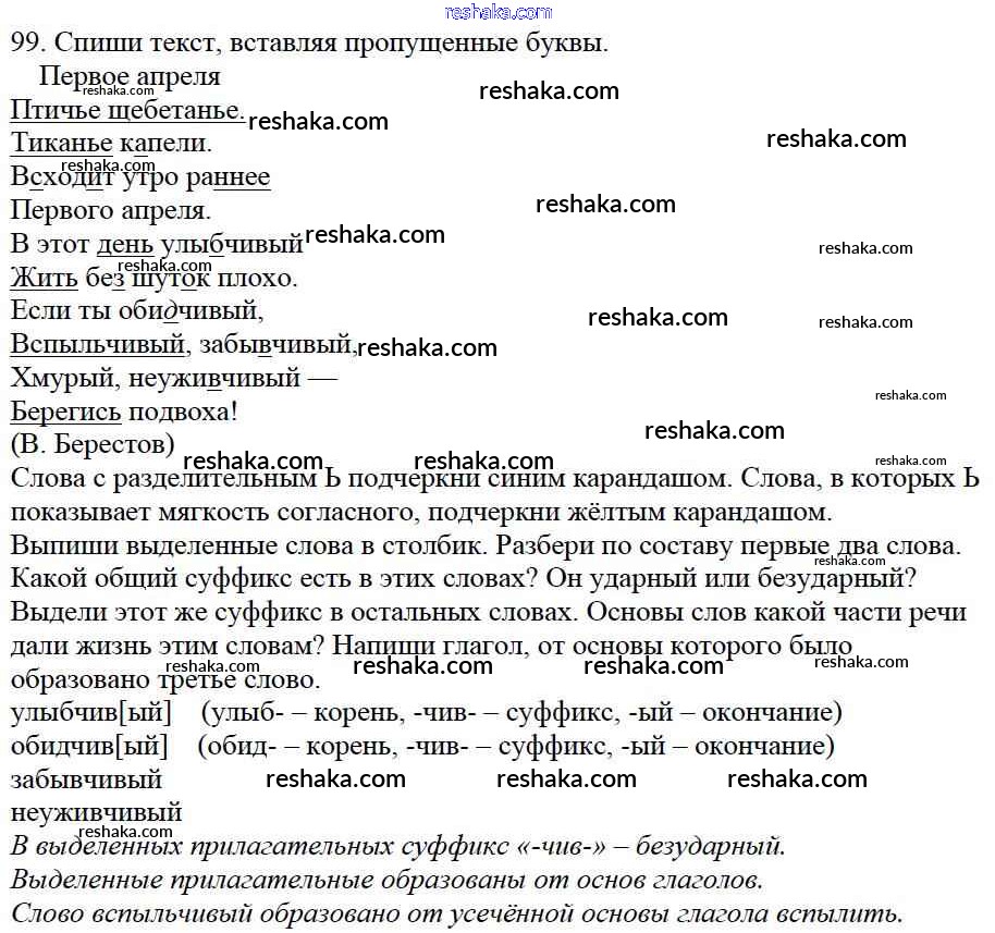 Решака - онлайн ответы Русский язык Каленчук, Чуракова за 4 класс Учебник ФГОС 2016 - 99