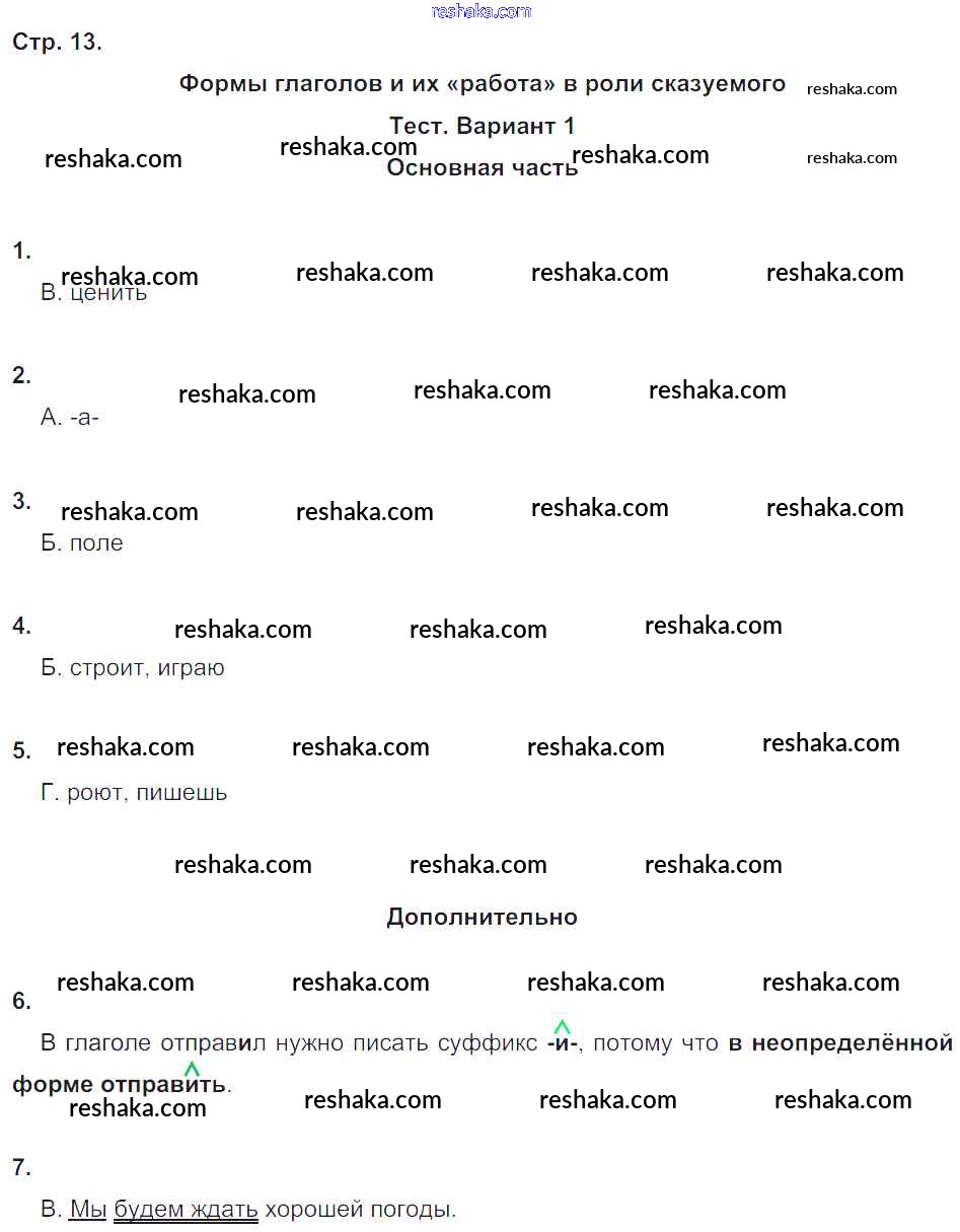 Решака - онлайн ответы Русский язык Калинина, Желтовская за 4 класс Тесты и самостоятельные работы для текущего контроля ФГОС 2017 - 13