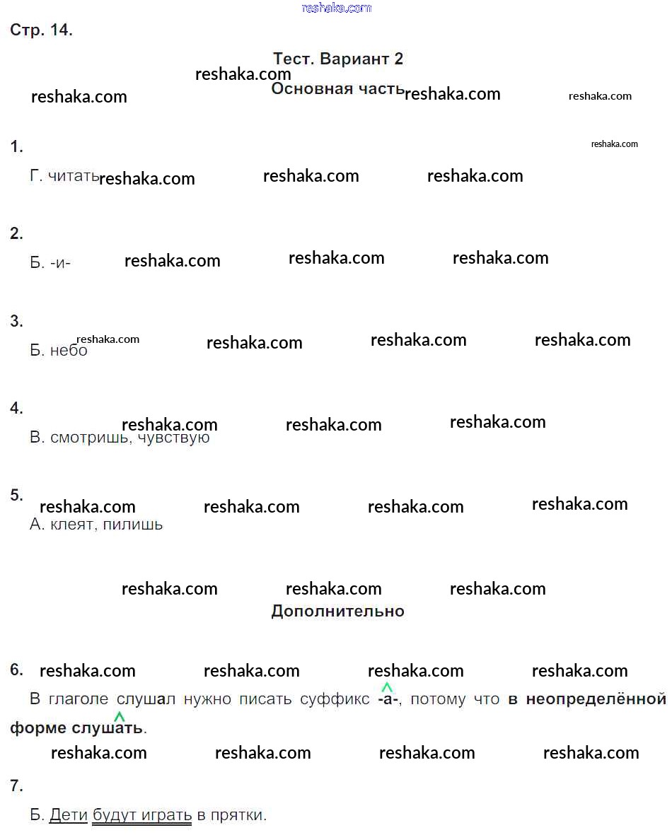 Решака - онлайн ответы Русский язык Калинина, Желтовская за 4 класс Тесты и самостоятельные работы для текущего контроля ФГОС 2017 - 14