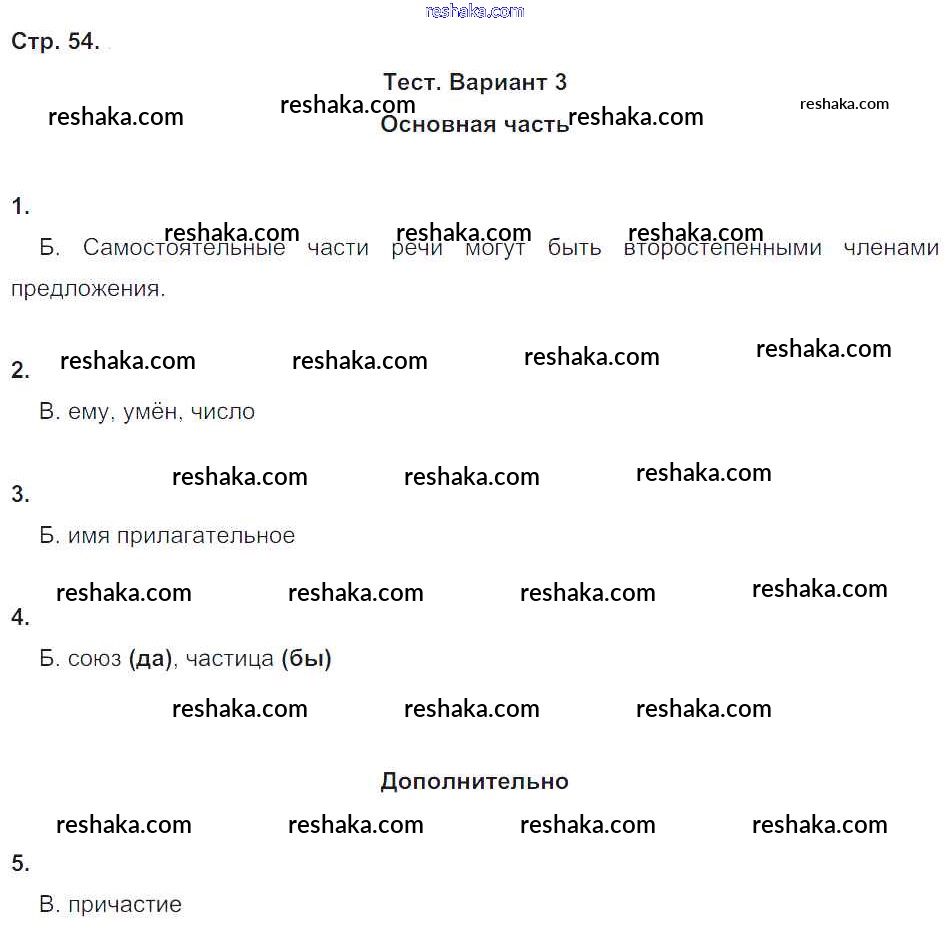 Решака - онлайн ответы Русский язык Калинина, Желтовская за 4 класс Тесты и самостоятельные работы для текущего контроля ФГОС 2017 - 54