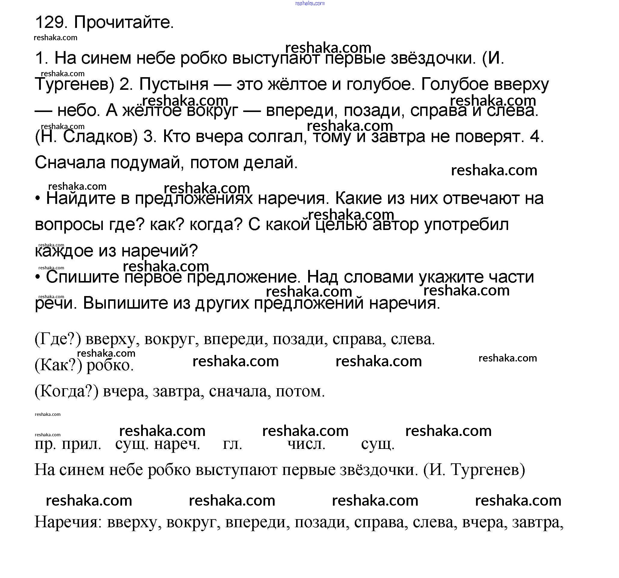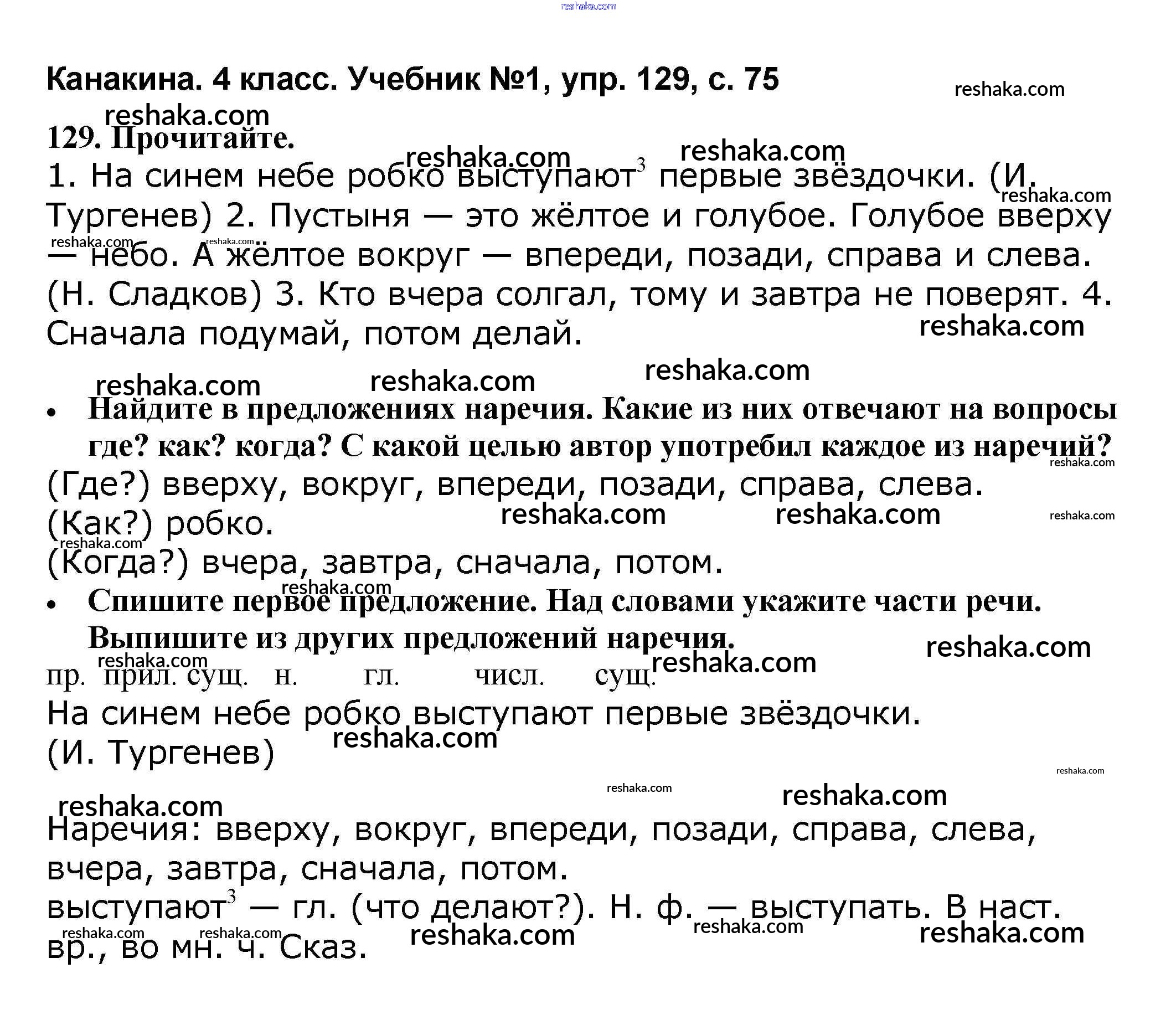 Решака - онлайн ответы Русский язык Канакина, Горецкий за 4 класс Учебник ФГОС 2015 - 129