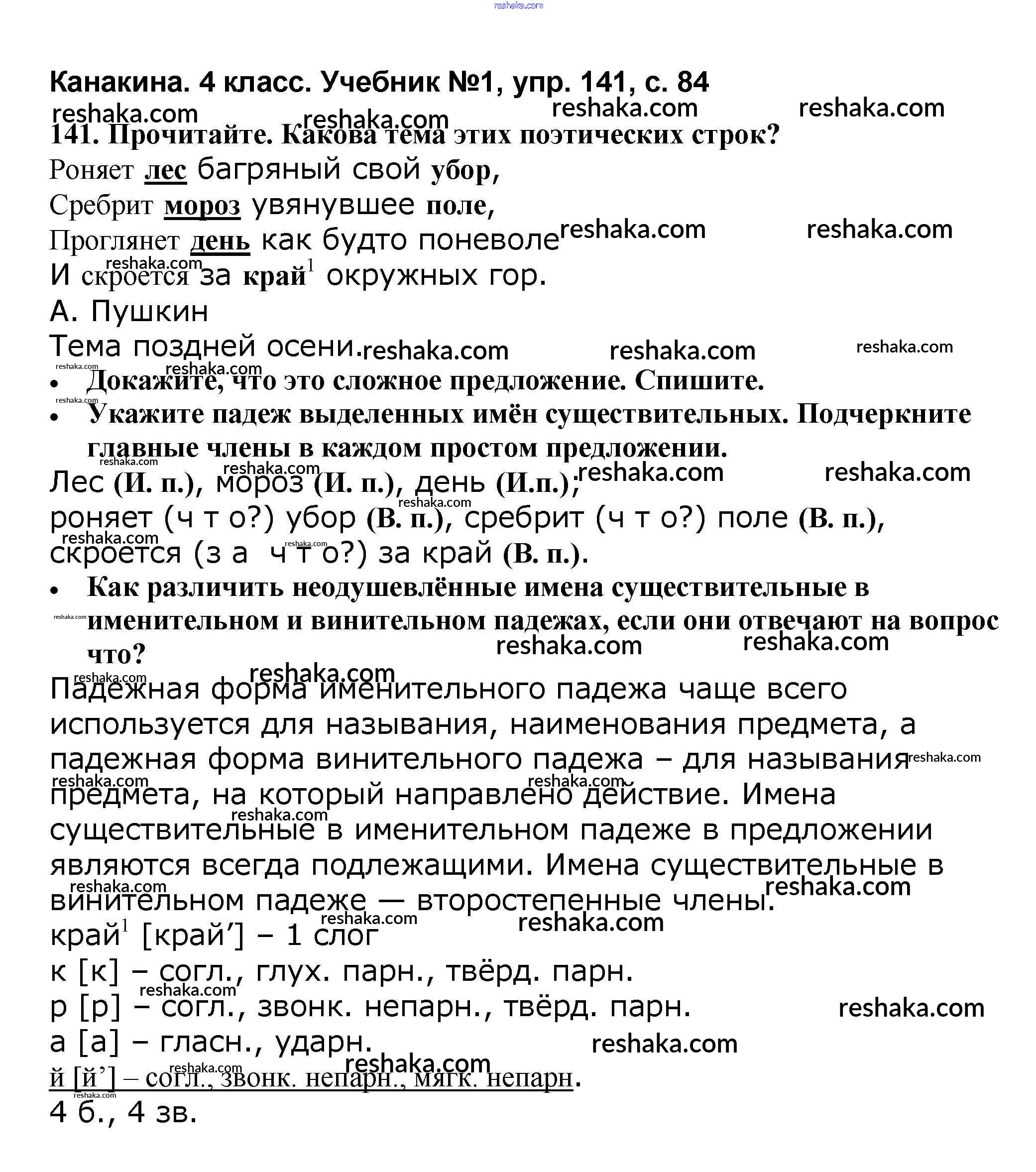 Решака - онлайн ответы Русский язык Канакина, Горецкий за 4 класс Учебник ФГОС 2015 - 141