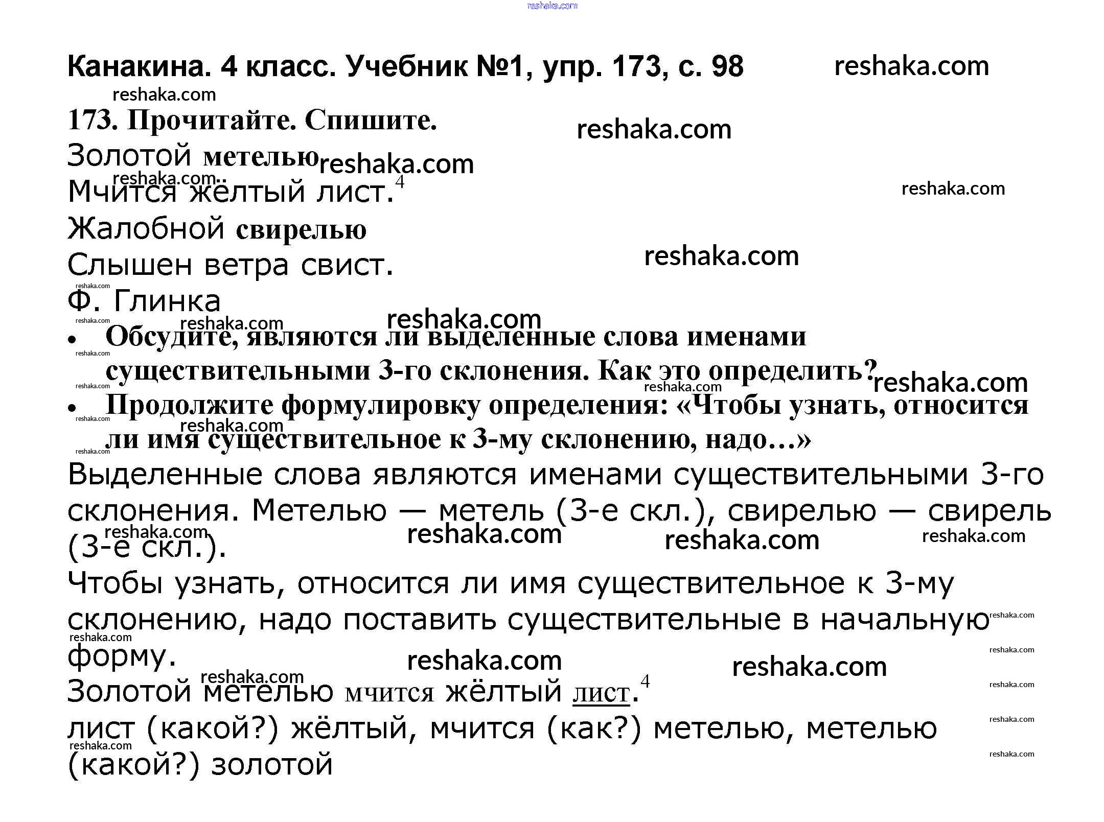 Решака - онлайн ответы Русский язык Канакина, Горецкий за 4 класс Учебник ФГОС 2015 - 173