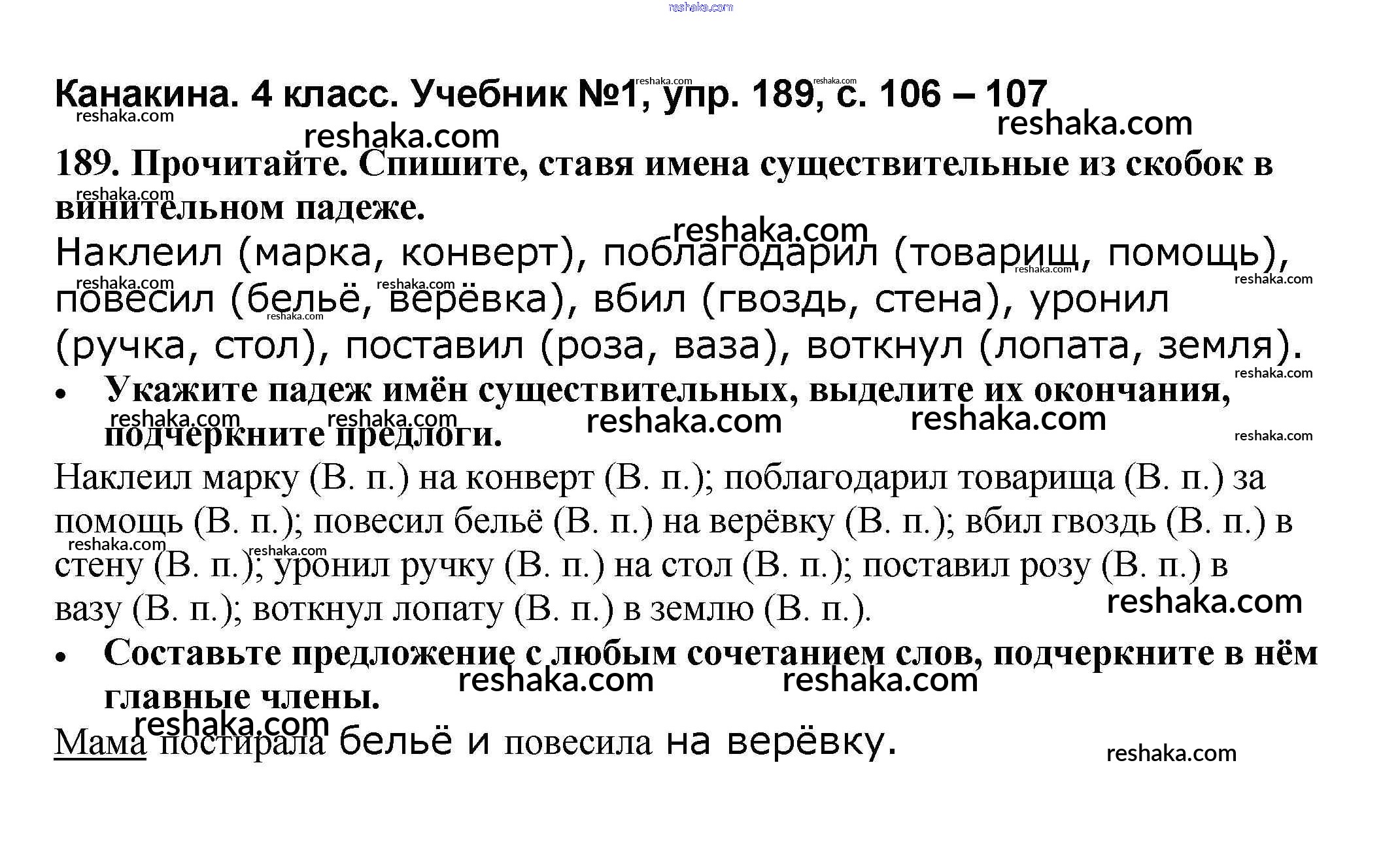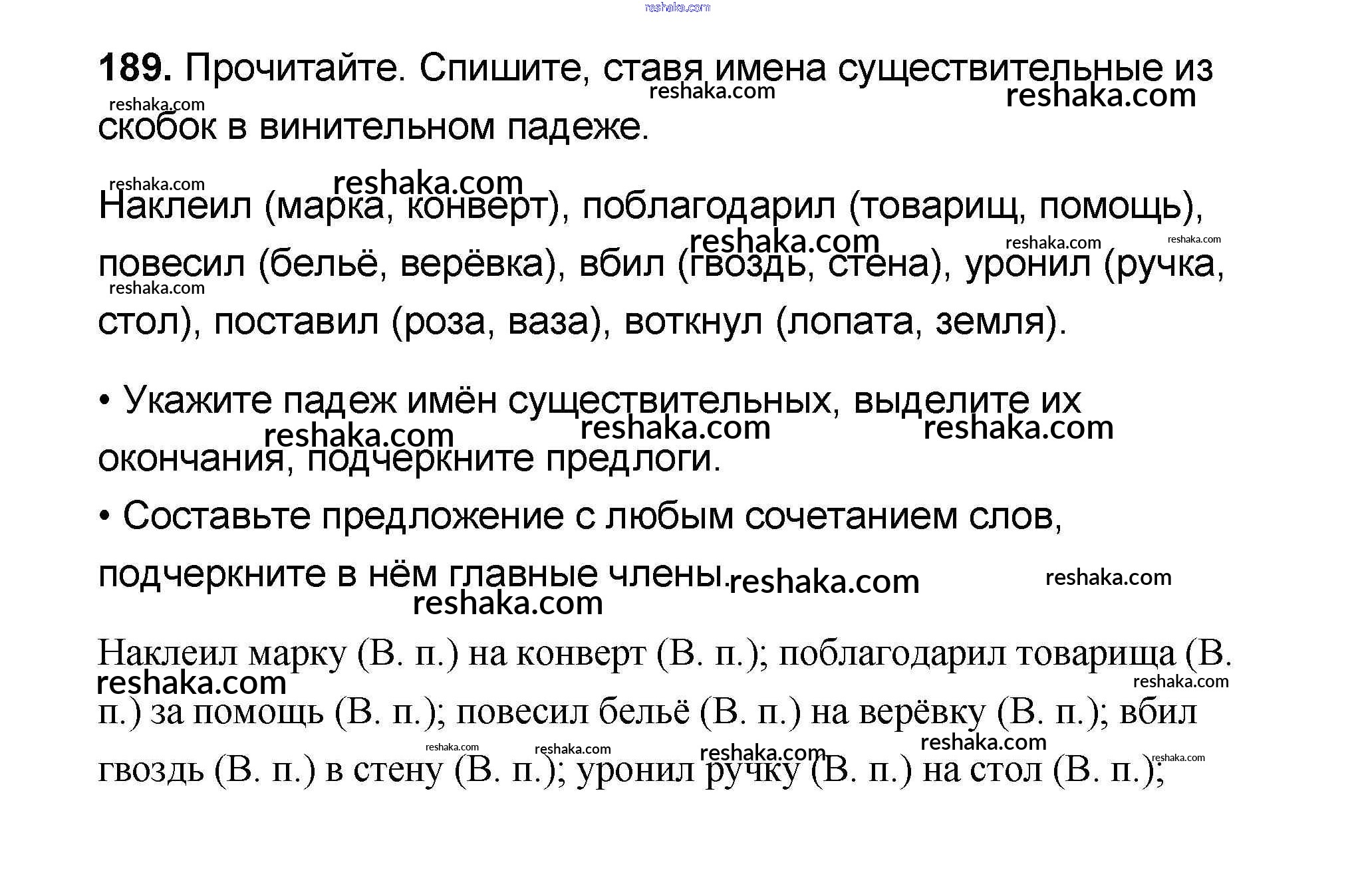 Решака - онлайн ответы Русский язык Канакина, Горецкий за 4 класс Учебник ФГОС 2015 - 189