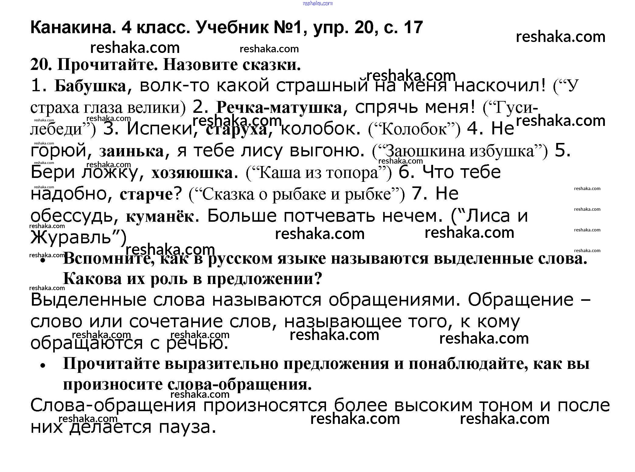 Решака - онлайн ответы Русский язык Канакина, Горецкий за 4 класс Учебник ФГОС 2015 - 20
