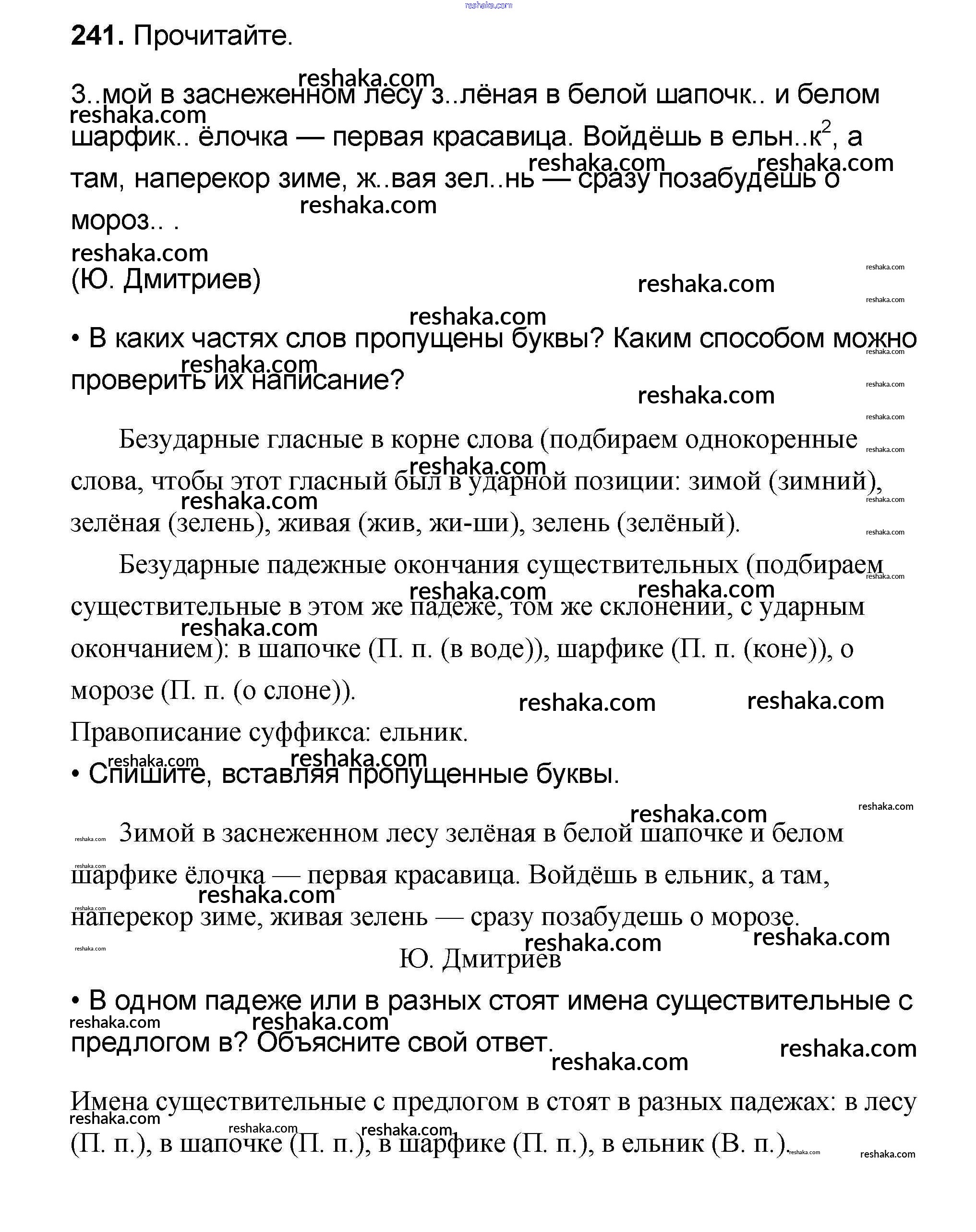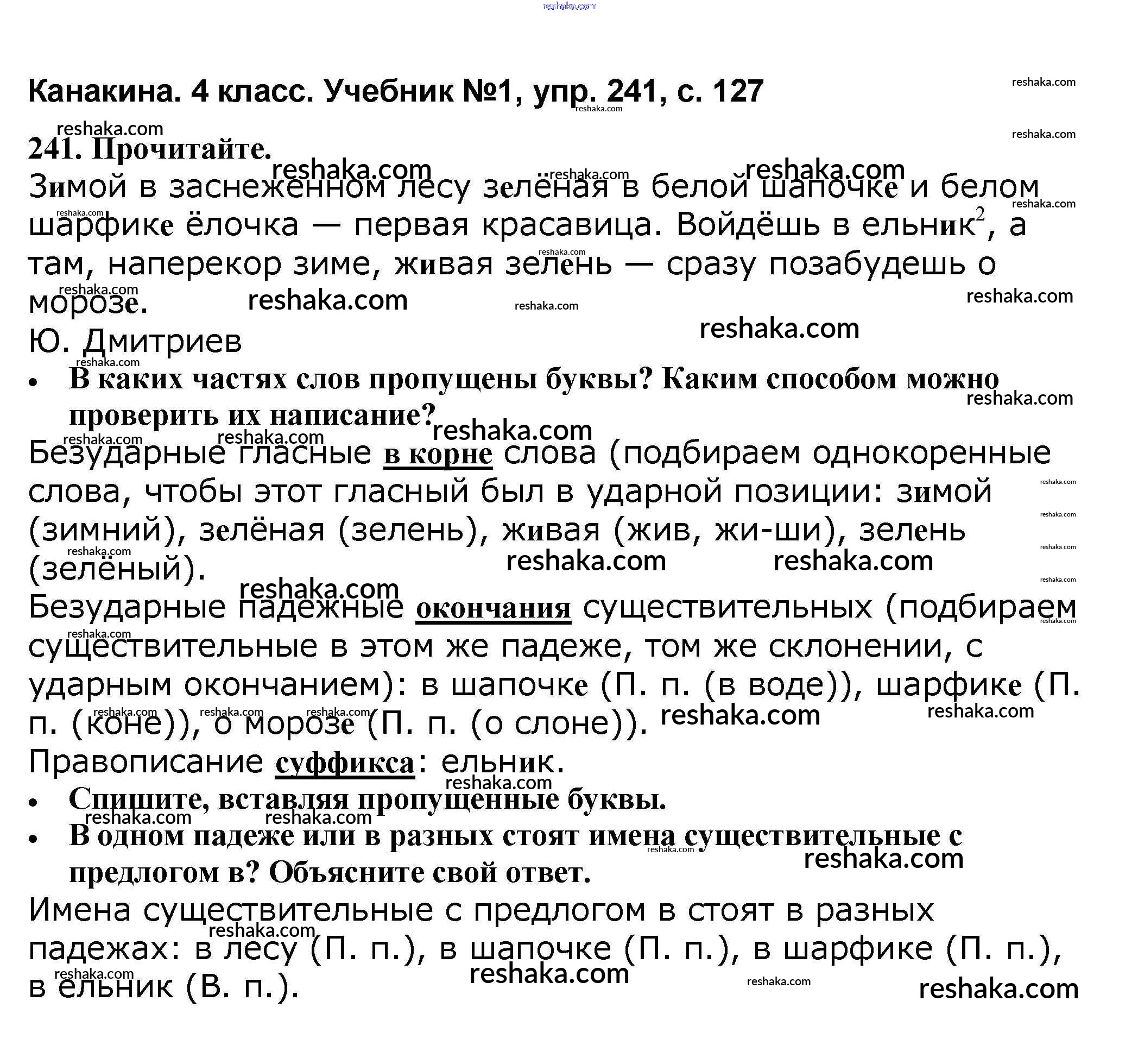 Решака - онлайн ответы Русский язык Канакина, Горецкий за 4 класс Учебник ФГОС 2015 - 241