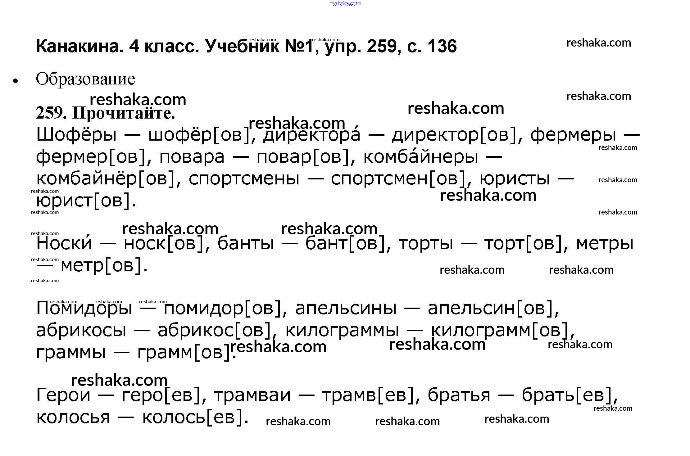 Решака - онлайн ответы Русский язык Канакина, Горецкий за 4 класс Учебник ФГОС 2015 - 259