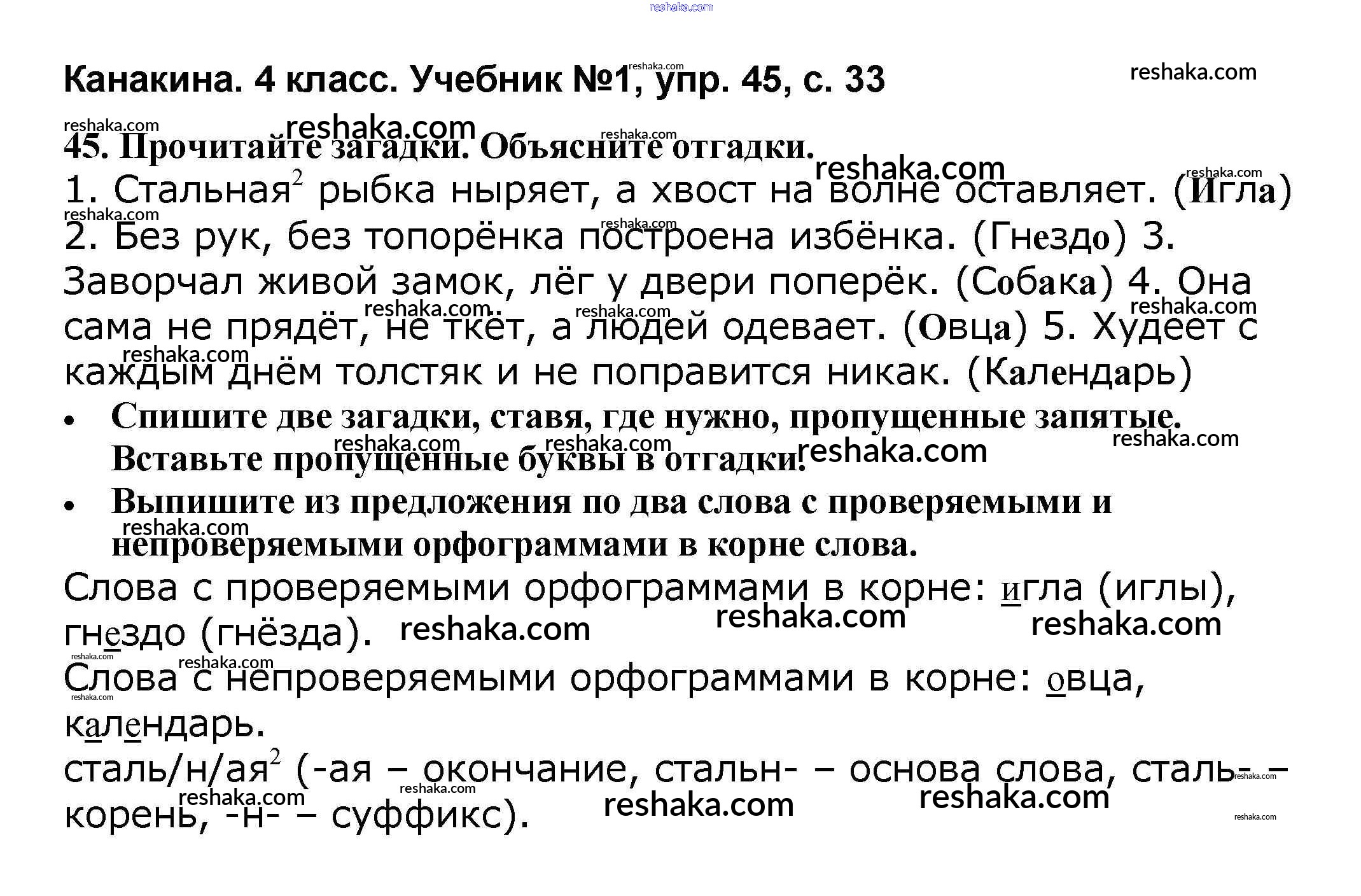 Решака - онлайн ответы Русский язык Канакина, Горецкий за 4 класс Учебник ФГОС 2015 - 45