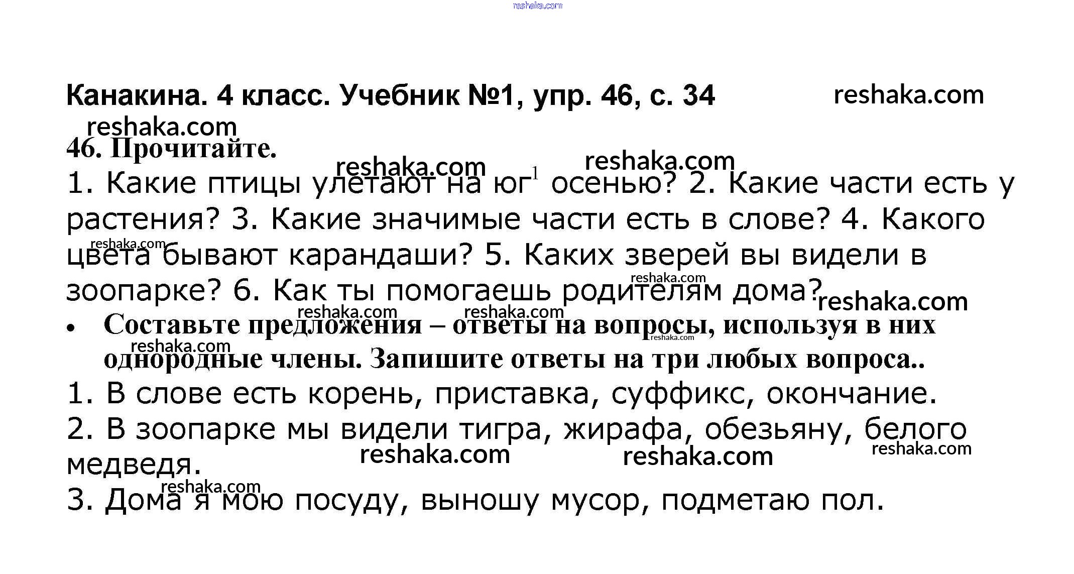 Решака - онлайн ответы Русский язык Канакина, Горецкий за 4 класс Учебник ФГОС 2015 - 46