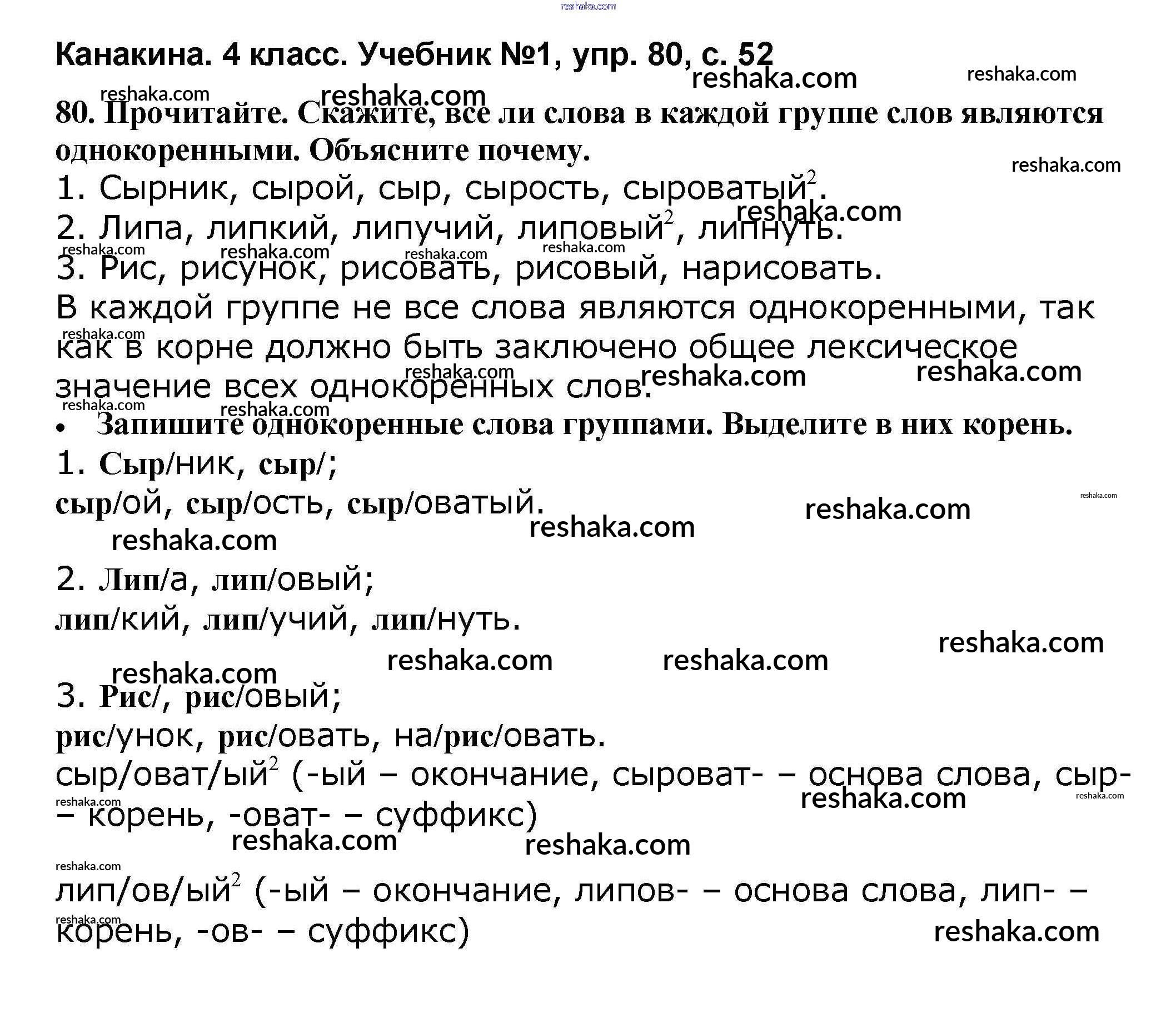 Решака - онлайн ответы Русский язык Канакина, Горецкий за 4 класс Учебник ФГОС 2015 - 80