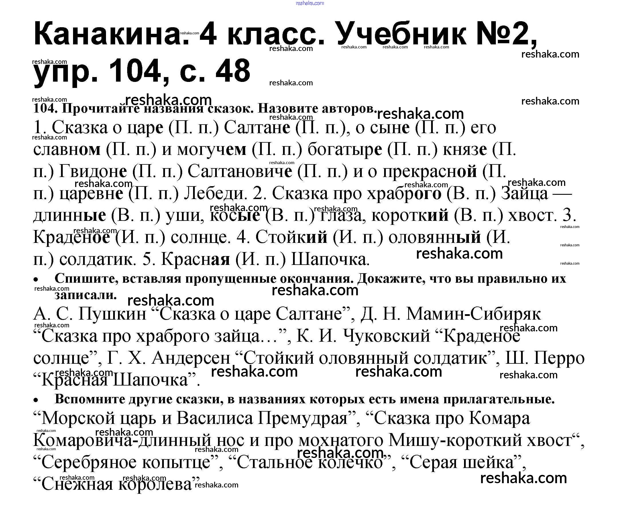 Решака - онлайн ответы Русский язык Канакина, Горецкий за 4 класс Учебник ФГОС 2015 - 104
