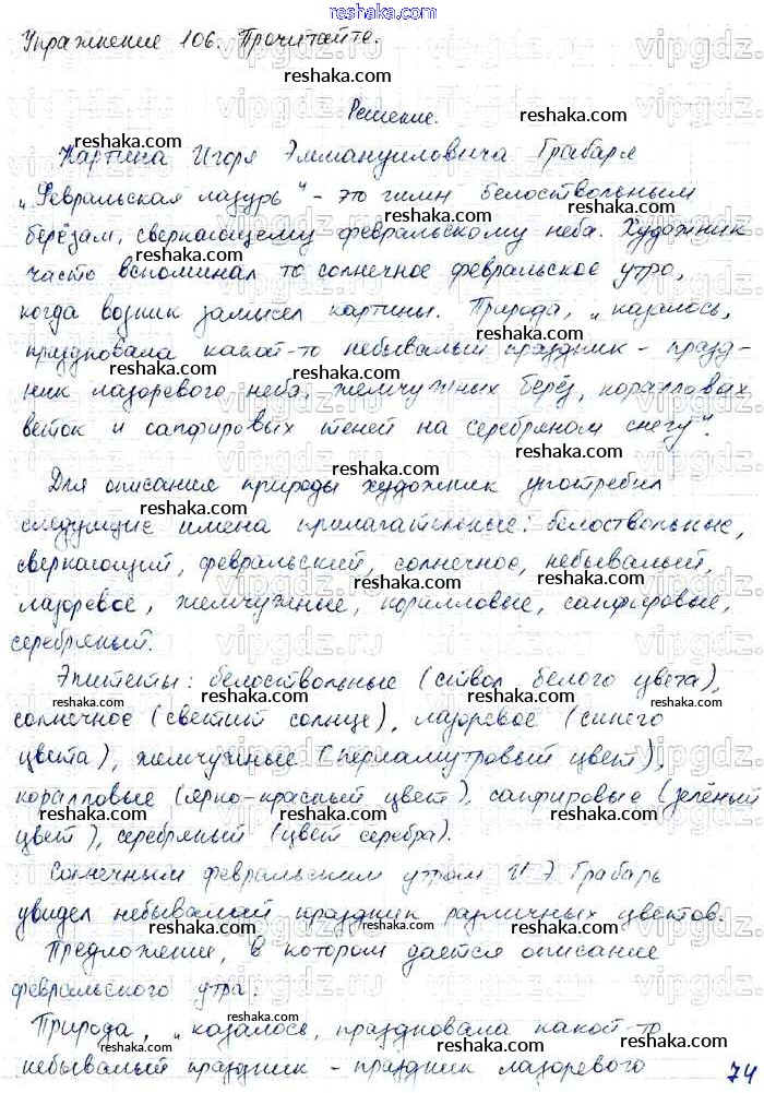 Решака - онлайн ответы Русский язык Канакина, Горецкий за 4 класс Учебник ФГОС 2015 - 106