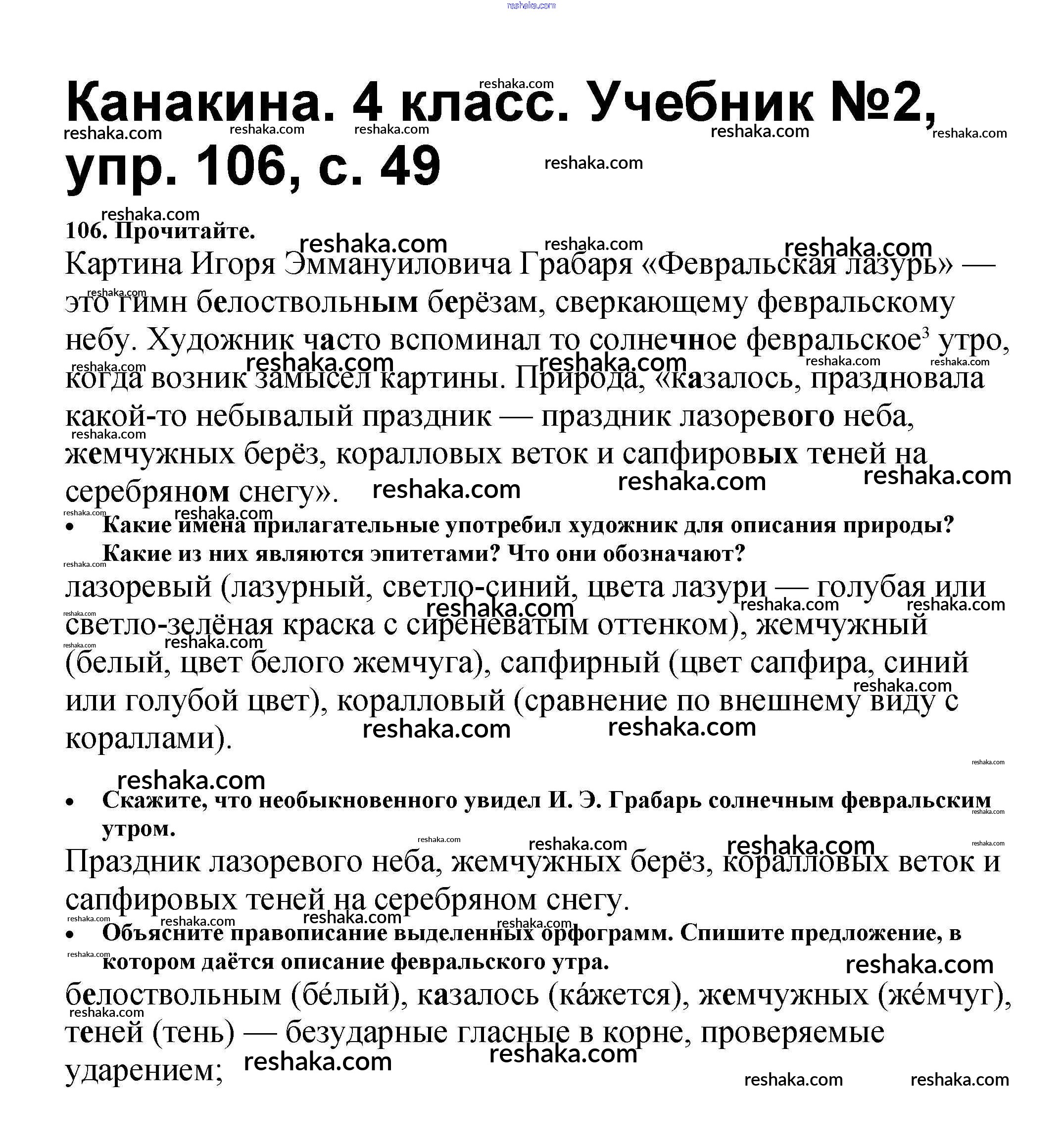 Представляем вам сборники по Русскому языку, с готовыми ответами к Учебнику Канакина школьной программы для учеников четвертый класса. Это не просто гдз с ответом, а с подсказками, как верно решить Часть 2 106. Проверяй домашку с умом и получай высший балл!