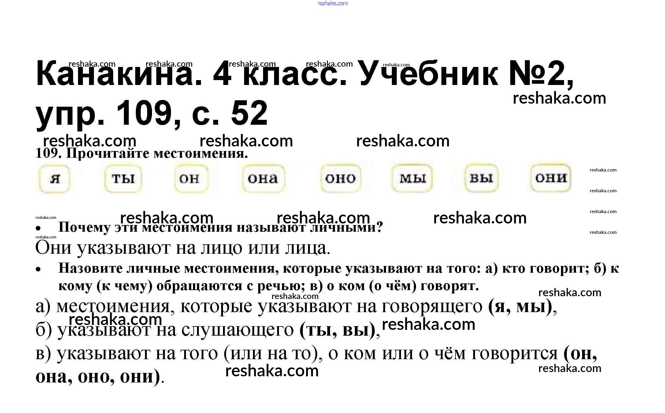 Решака - онлайн ответы Русский язык Канакина, Горецкий за 4 класс Учебник ФГОС 2015 - 109