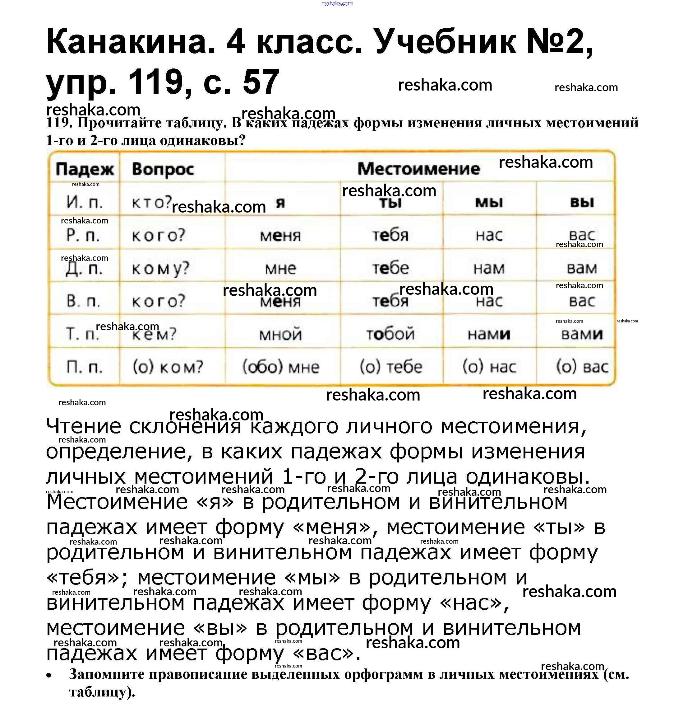 Решака - онлайн ответы Русский язык Канакина, Горецкий за 4 класс Учебник ФГОС 2015 - 119