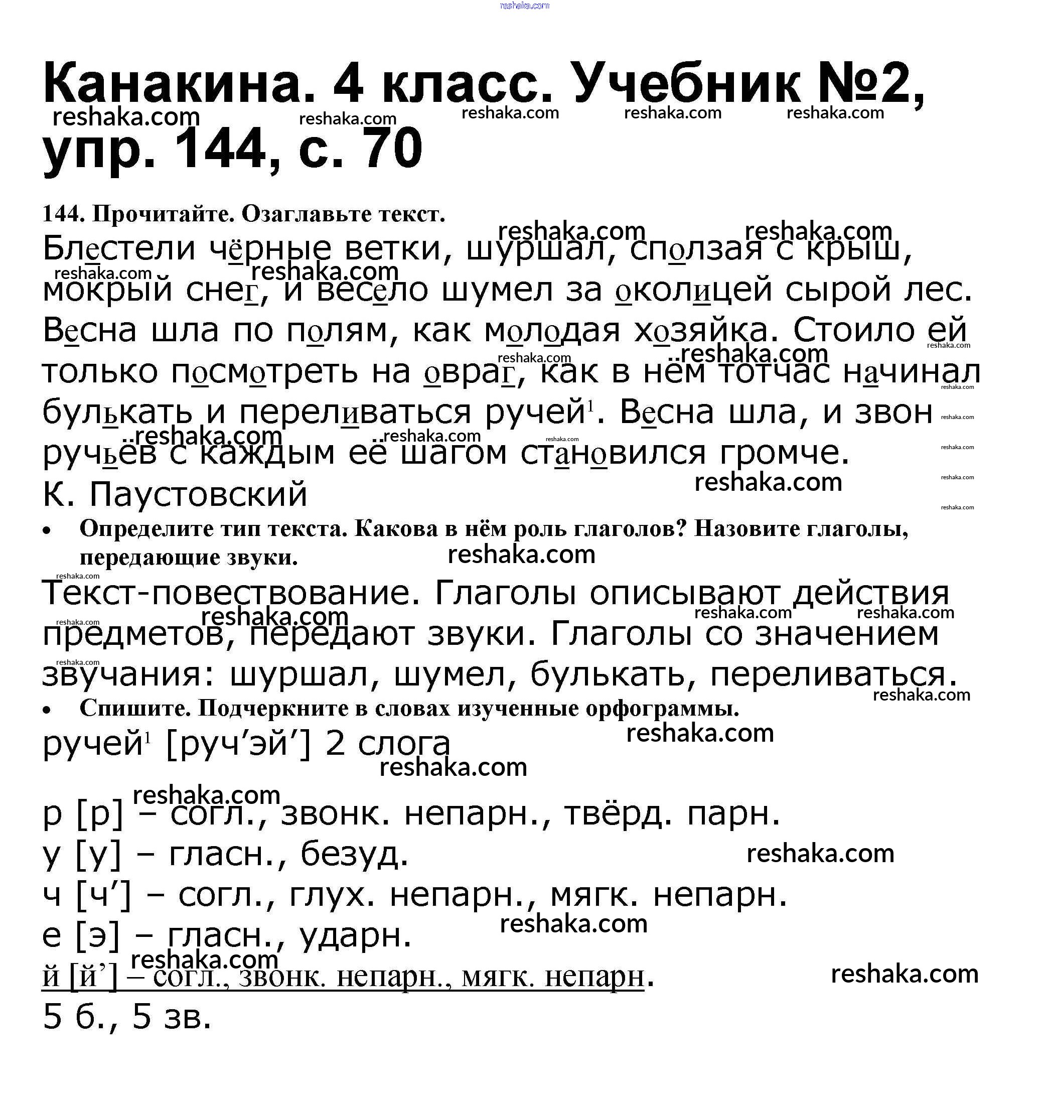 Решака - онлайн ответы Русский язык Канакина, Горецкий за 4 класс Учебник ФГОС 2015 - 144