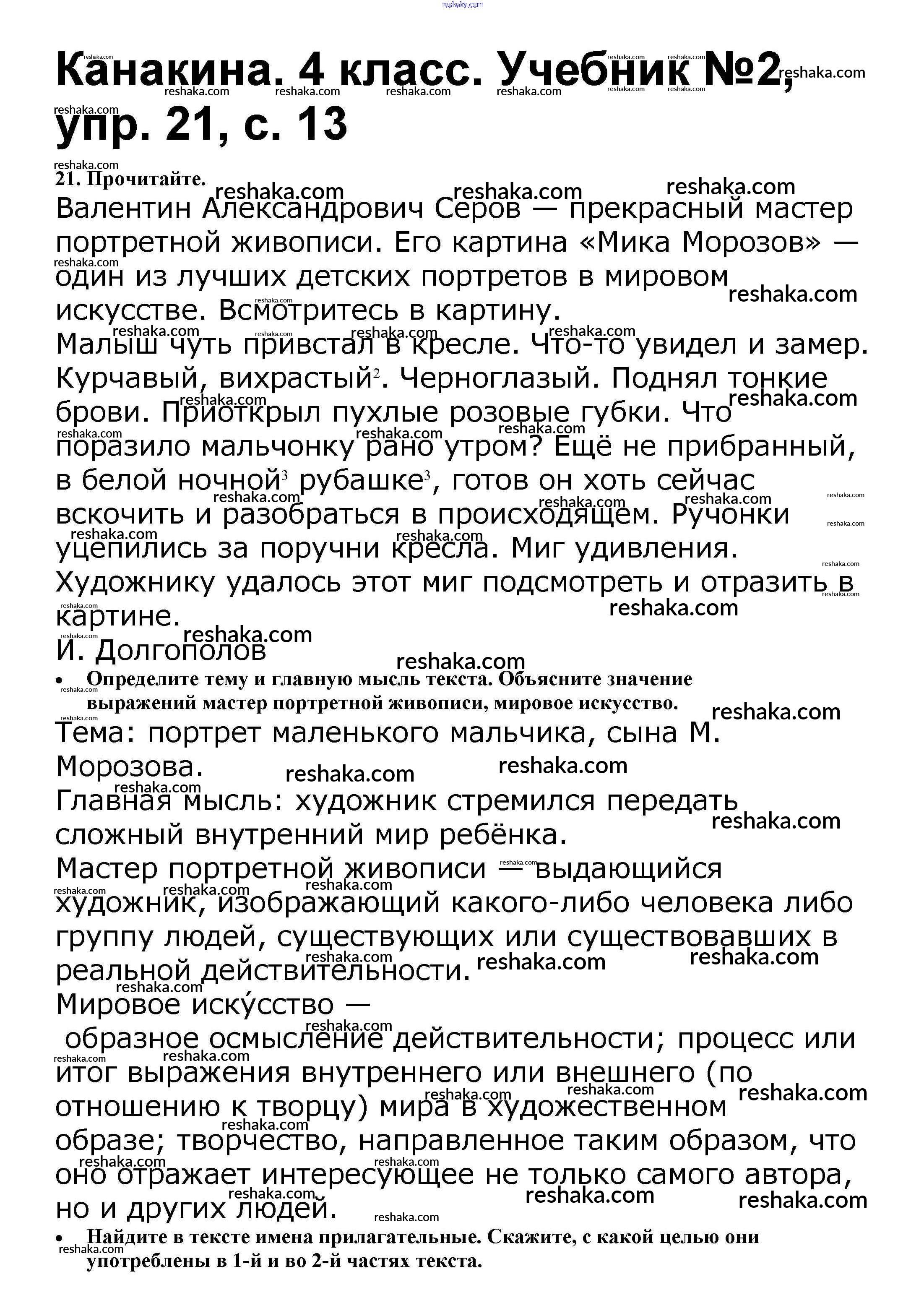 Представляем вам сборники по Русскому языку, с готовыми ответами к Учебнику Канакина школьной программы для учеников четвертый класса. Это не просто гдз с ответом, а с подсказками, как верно решить Часть 2 21. Проверяй домашку с умом и получай высший балл!