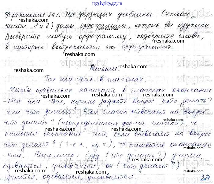 Решака - онлайн ответы Русский язык Канакина, Горецкий за 4 класс Учебник ФГОС 2015 - 291