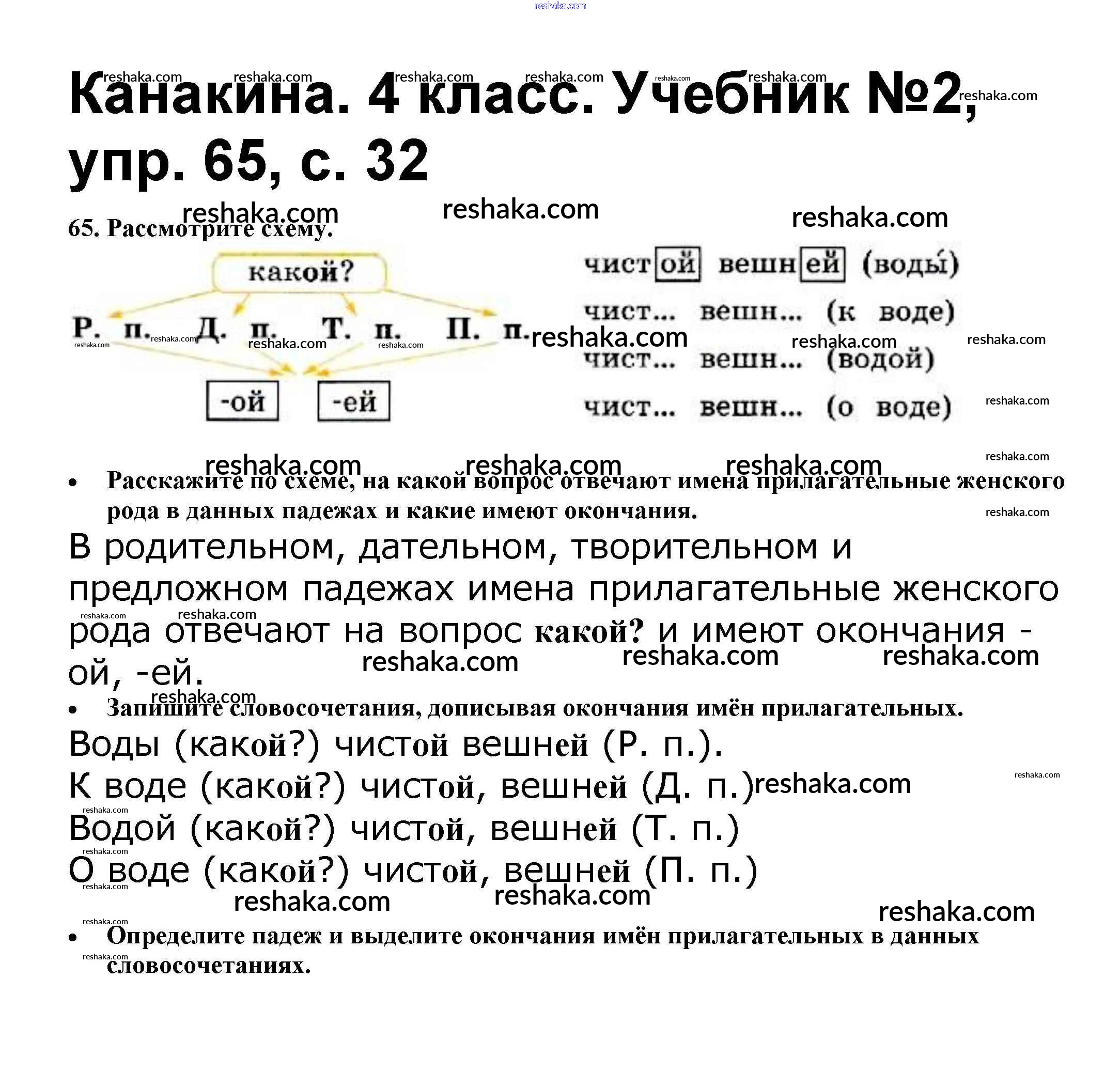 Представляем вам сборники по Русскому языку, с готовыми ответами к Учебнику Канакина школьной программы для учеников четвертый класса. Это не просто гдз с ответом, а с подсказками, как верно решить Часть 2 65. Проверяй домашку с умом и получай высший балл!