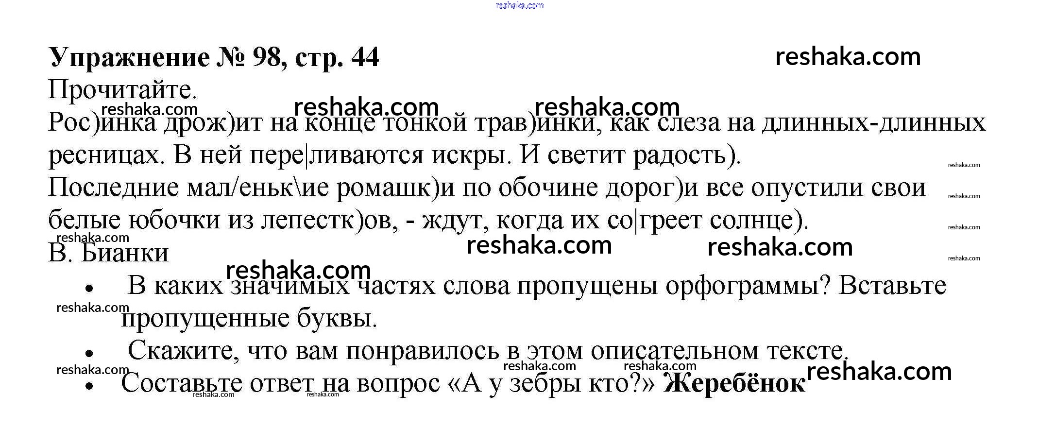 Решака - онлайн ответы Русский язык Канакина за 4 класс Рабочая тетрадь ФГОС 2013 - 98