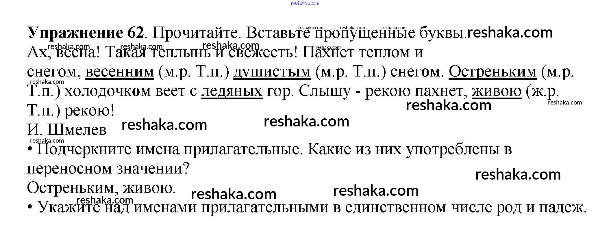 Решака - онлайн ответы Русский язык Канакина за 4 класс Рабочая тетрадь ФГОС 2013 - 62