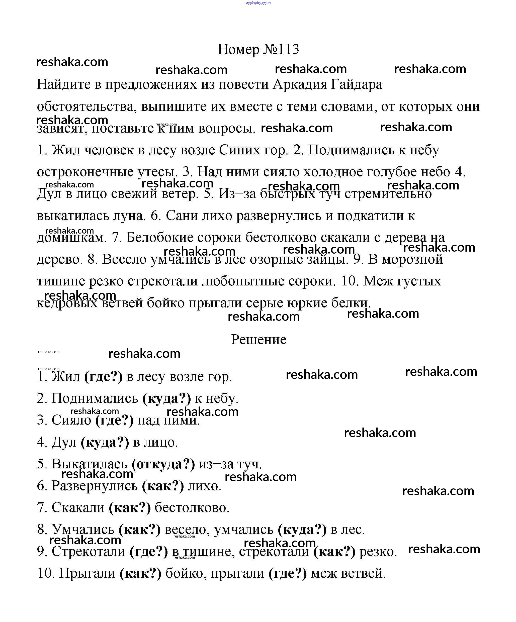 Решака - онлайн ответы Русский язык Климанова, Бабушкина за 4 класс Учебник ФГОС 2014 - 113