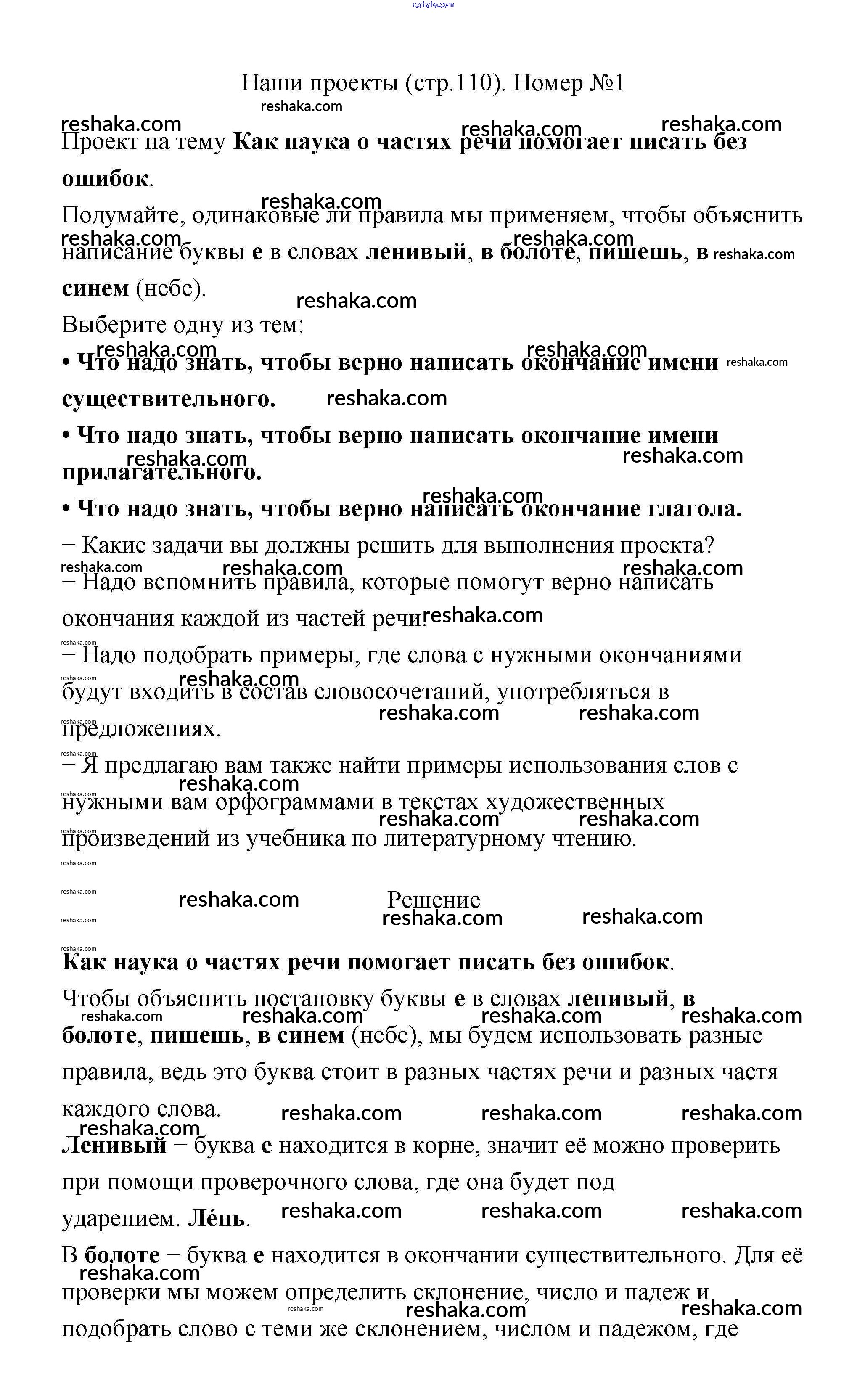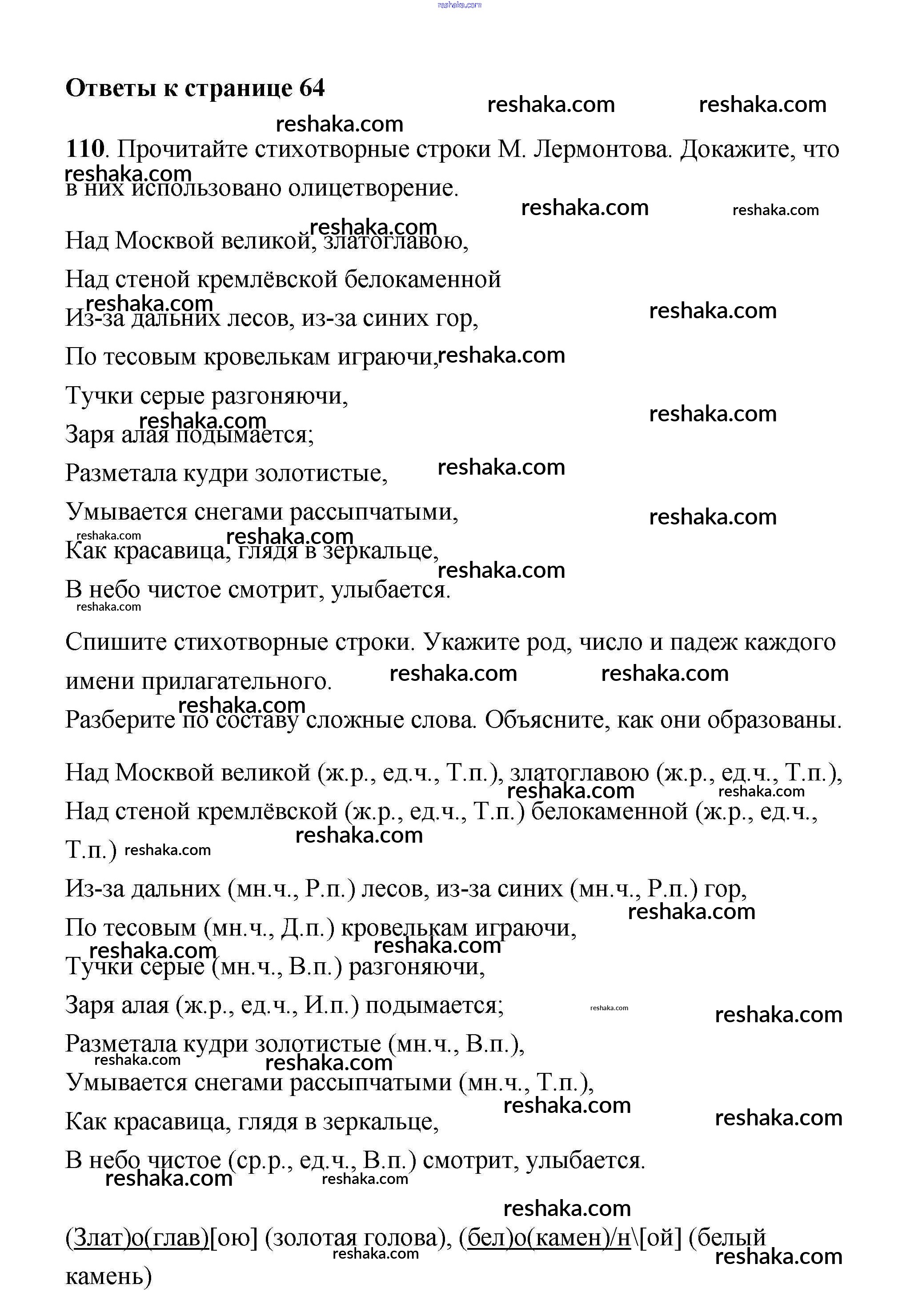 Решака - онлайн ответы Русский язык Климанова, Бабушкина за 4 класс Учебник ФГОС 2014 - 110