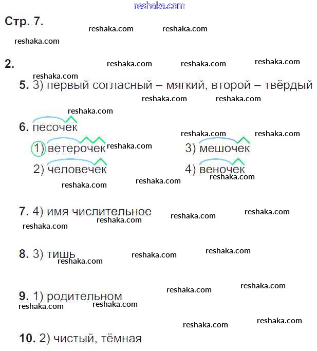 Решака - онлайн ответы Русский язык Корешкова за 4 класс Тетрадь для самостоятельной работы ФГОС 2019 - 7