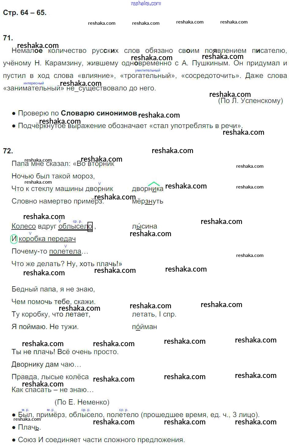 Решака - онлайн ответы Русский язык Корешкова за 4 класс Тетрадь для самостоятельной работы ФГОС 2019 - 64