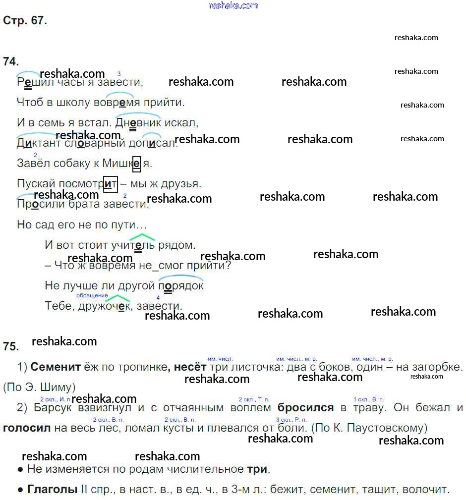 Решака - онлайн ответы Русский язык Корешкова за 4 класс Тетрадь для самостоятельной работы ФГОС 2019 - 67