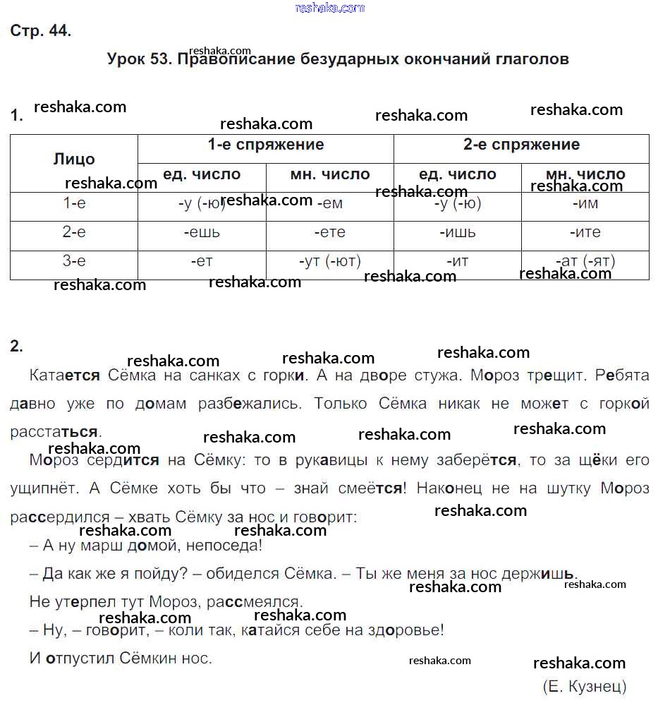 Решака - онлайн ответы Русский язык Кузнецова за 4 класс Рабочая тетрадь ФГОС 2018 - 44