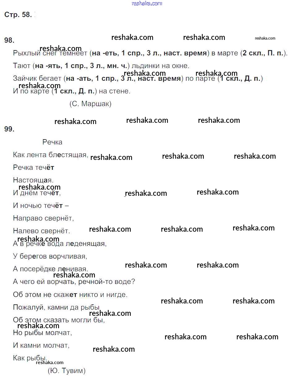 Решака - онлайн ответы Русский язык Кузнецова за 4 класс Рабочая тетрадь ФГОС 2015 - 58