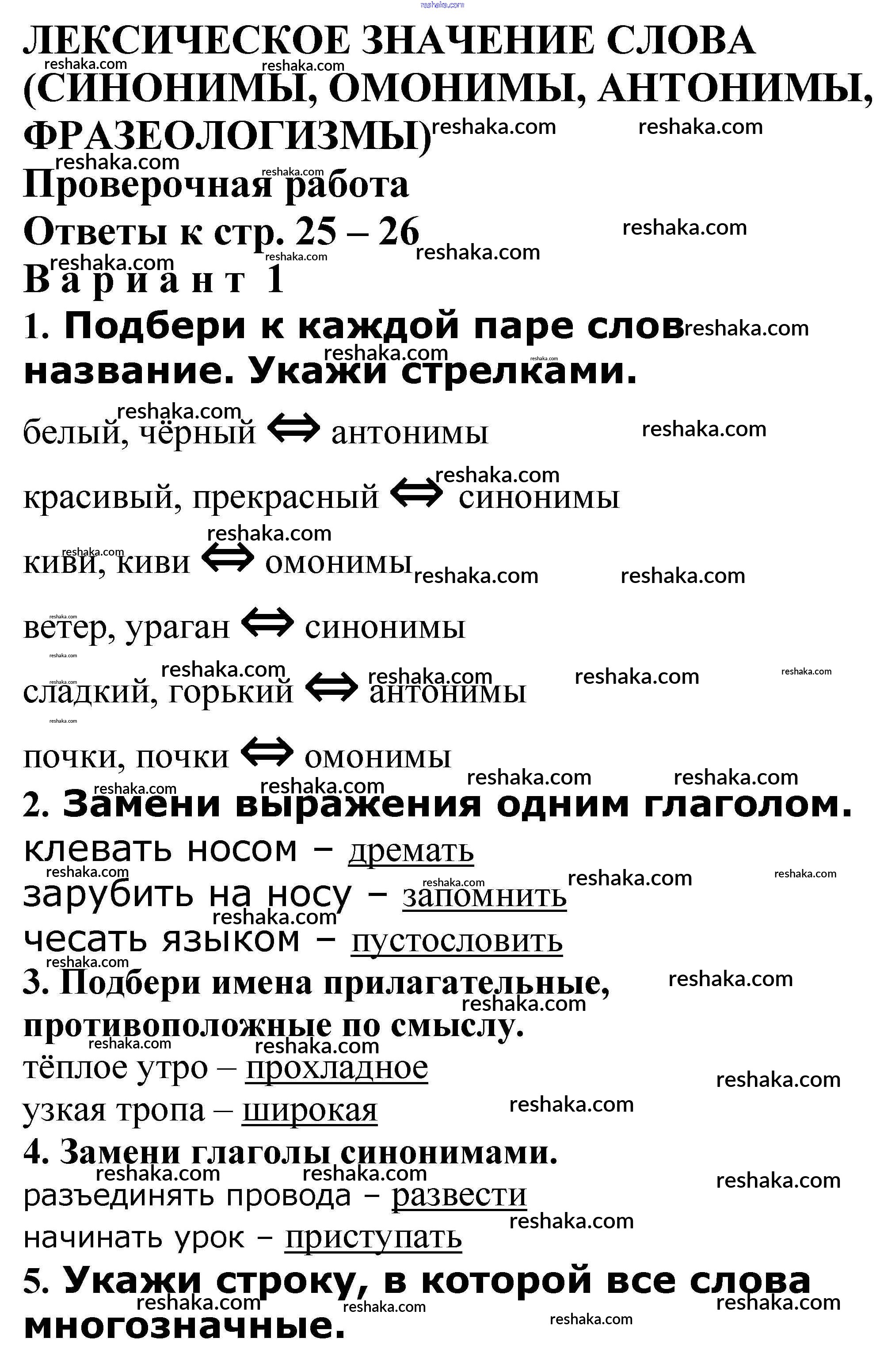 лексическое значение слова (синонимы, омонимы, антонимы, фразеологизмы) / стр. 25-26