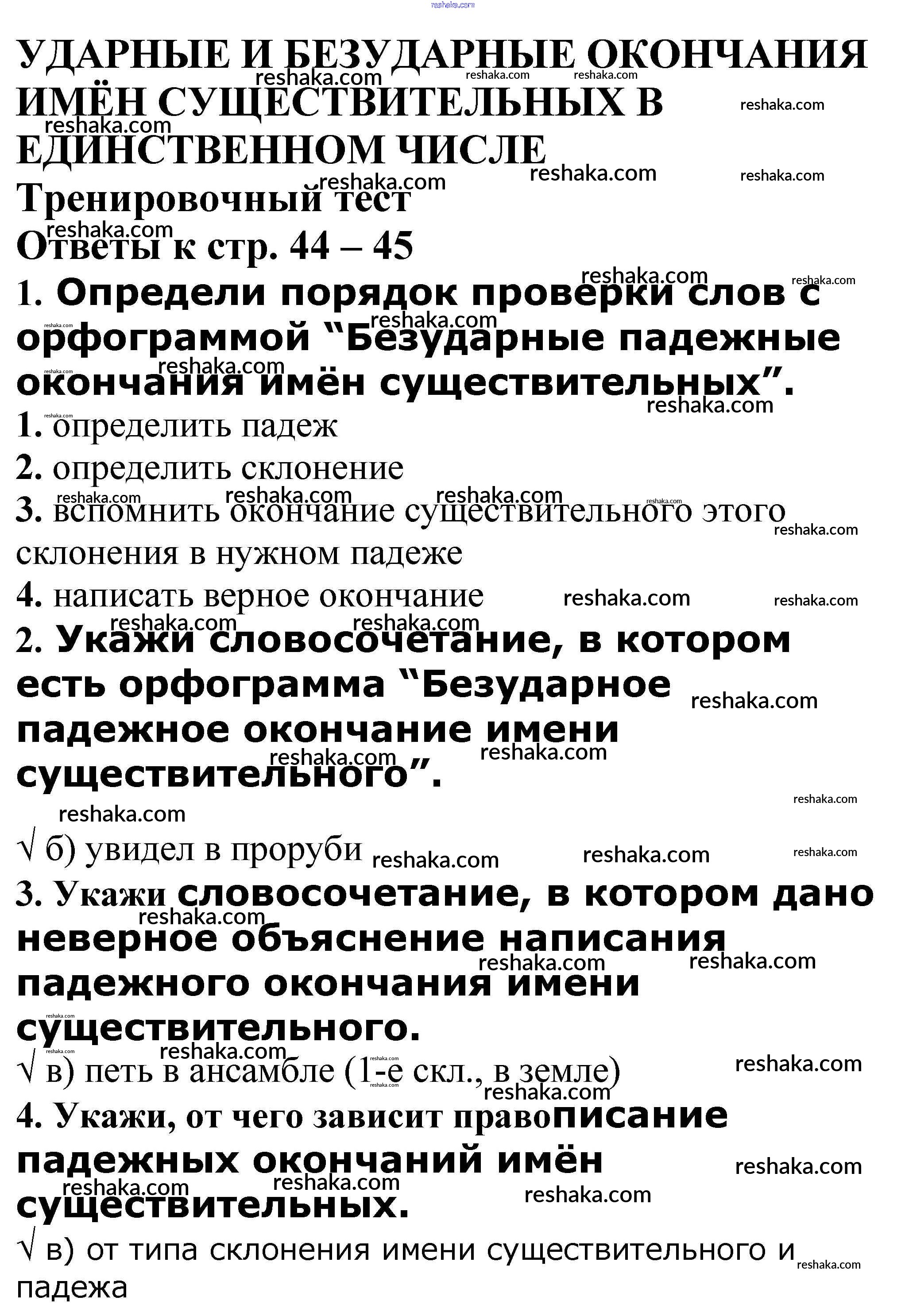 Решака - онлайн ответы Русский язык Максимова за 4 класс Проверочные и контрольные работы ФГОС 2017 - Тренировочный тест стр. 44 – 45