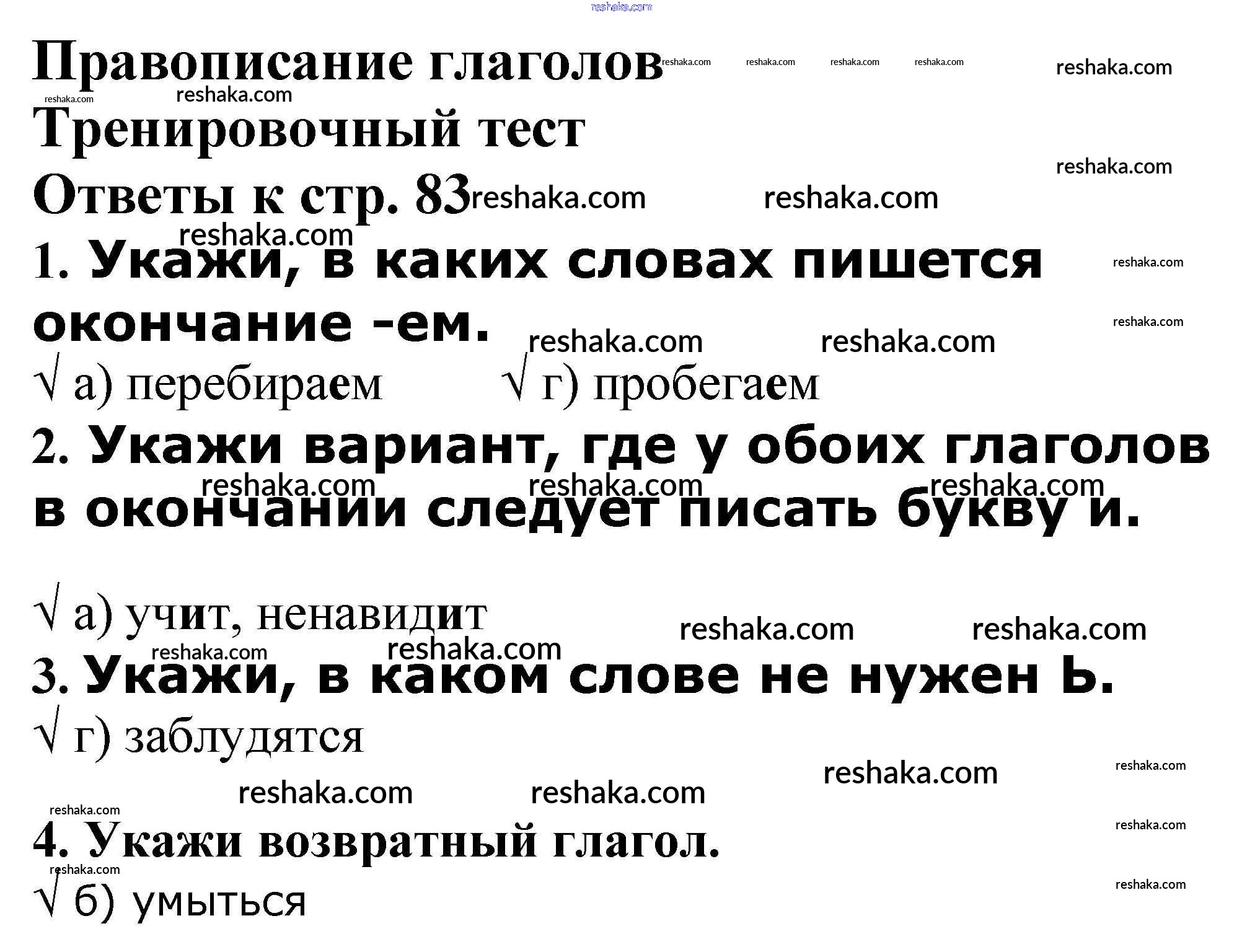 Решака - онлайн ответы Русский язык Максимова за 4 класс Проверочные и контрольные работы ФГОС 2017 - Тренировочный тест стр. 83