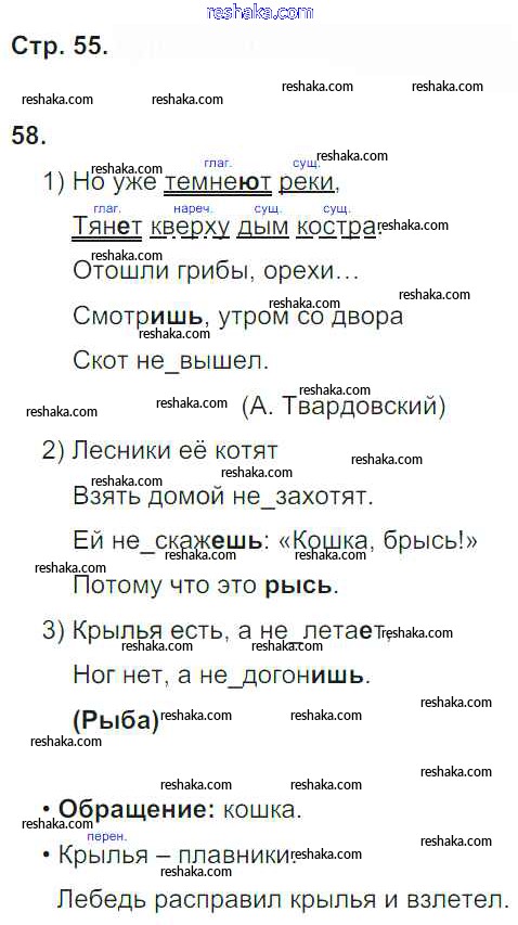 Решака - онлайн ответы Русский язык Песняева, Анащенкова за 4 класс Рабочая тетрадь ФГОС 2017 - 55
