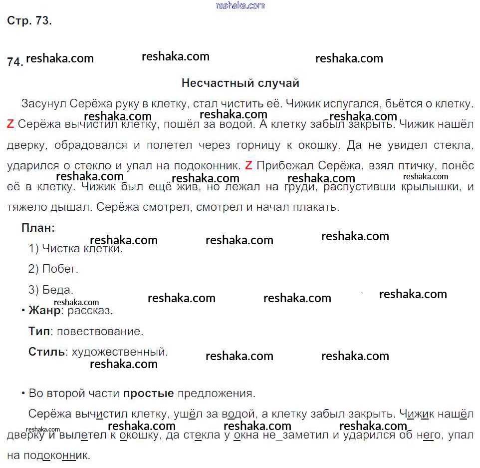 Решака - онлайн ответы Русский язык Песняева, Анащенкова за 4 класс Рабочая тетрадь ФГОС 2017 - 73
