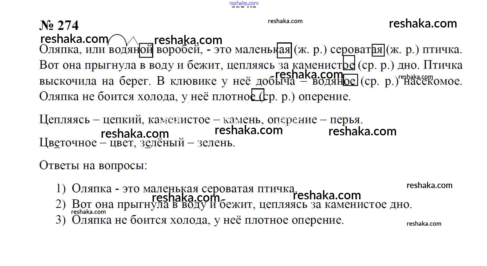 Решака - онлайн ответы Русский язык Рамзаева за 4 класс Учебник ФГОС 2014 - 274