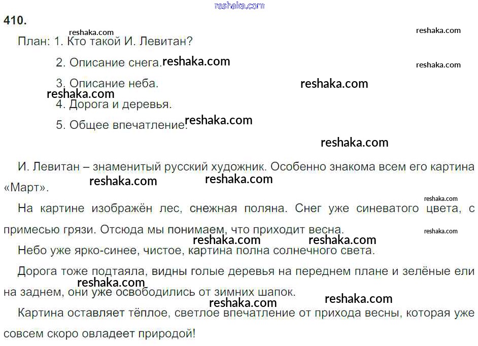 Решака - онлайн ответы Русский язык Рамзаева за 4 класс Учебник ФГОС 2014 - 410