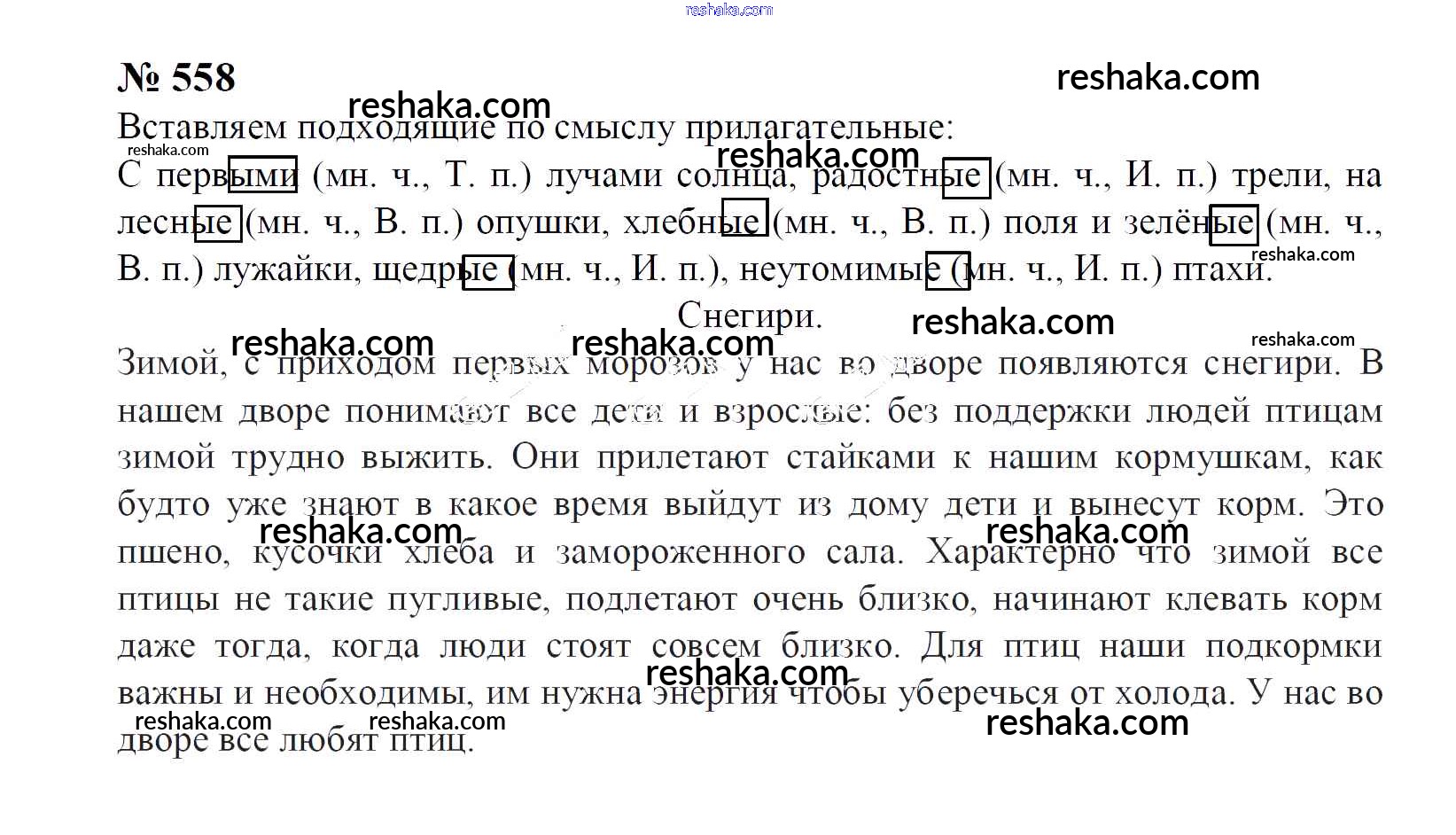Решака - онлайн ответы Русский язык Рамзаева за 4 класс Учебник ФГОС 2014 - 558